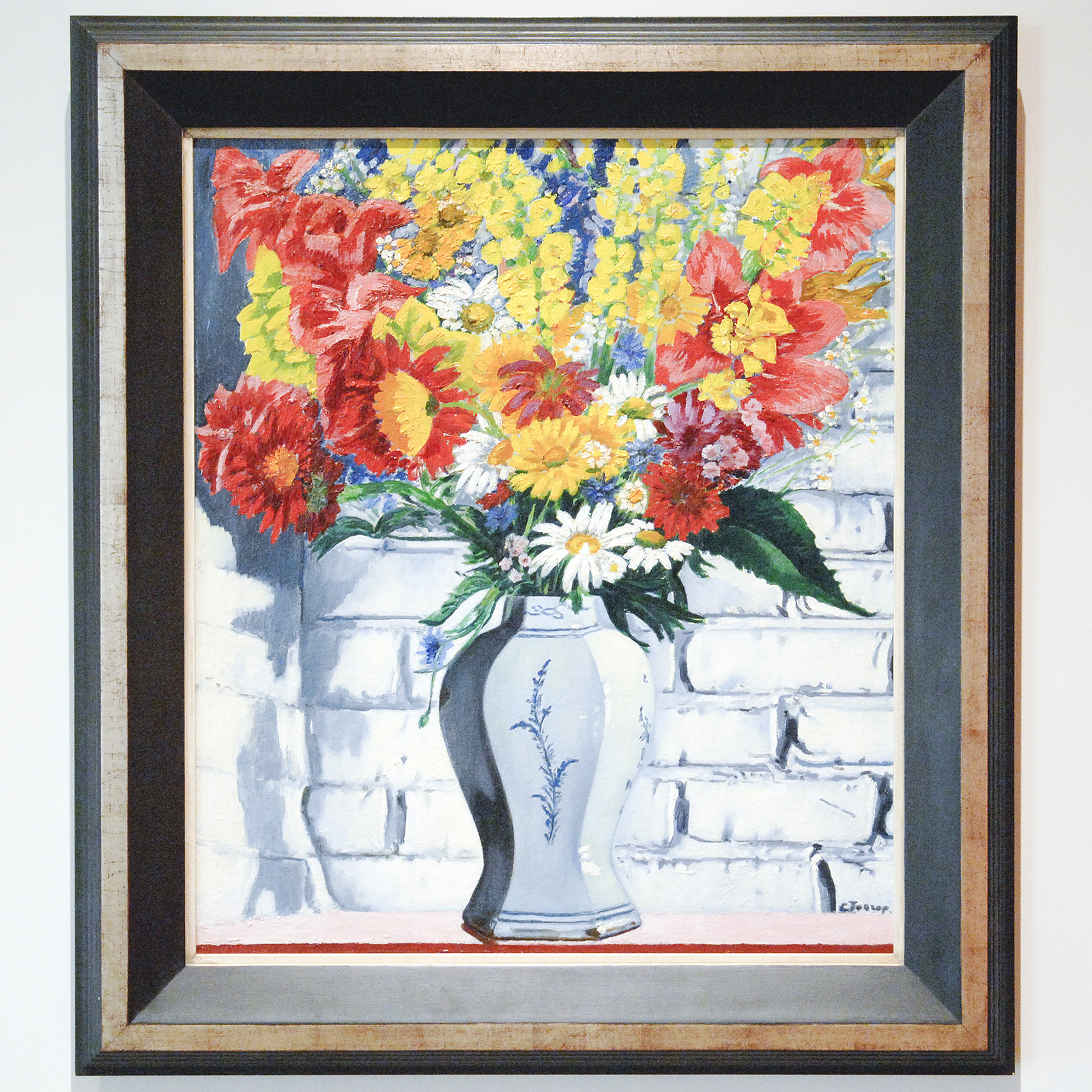 Charley Toorop – Vaas met bloemen tegen muur – Olieverf op doek, 1951