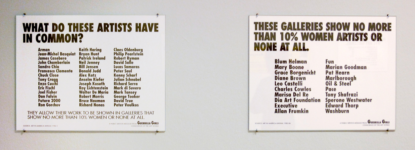 Guerrilla Girls – What do these artists have in common & These galeries show no more than 10% woman or none at all – Offset op papier