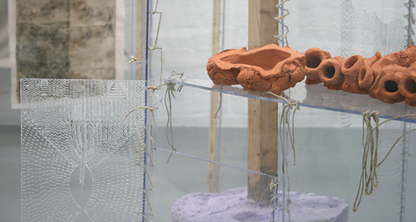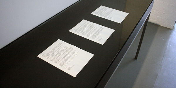 Het werk van Heidi Linck behoeft wat meer uitleg dan er zo snel te zien is op de foto’s. Eerst is er een filmprojectie van een vervallen kassencomplex, uit de hand gefilmd of op een statief wat een beetje zwiert. Buiten is een drietal brieven te zien van mensen die een relatie  hebben met die locatie die zich inderdaad bij Venlo bevind.