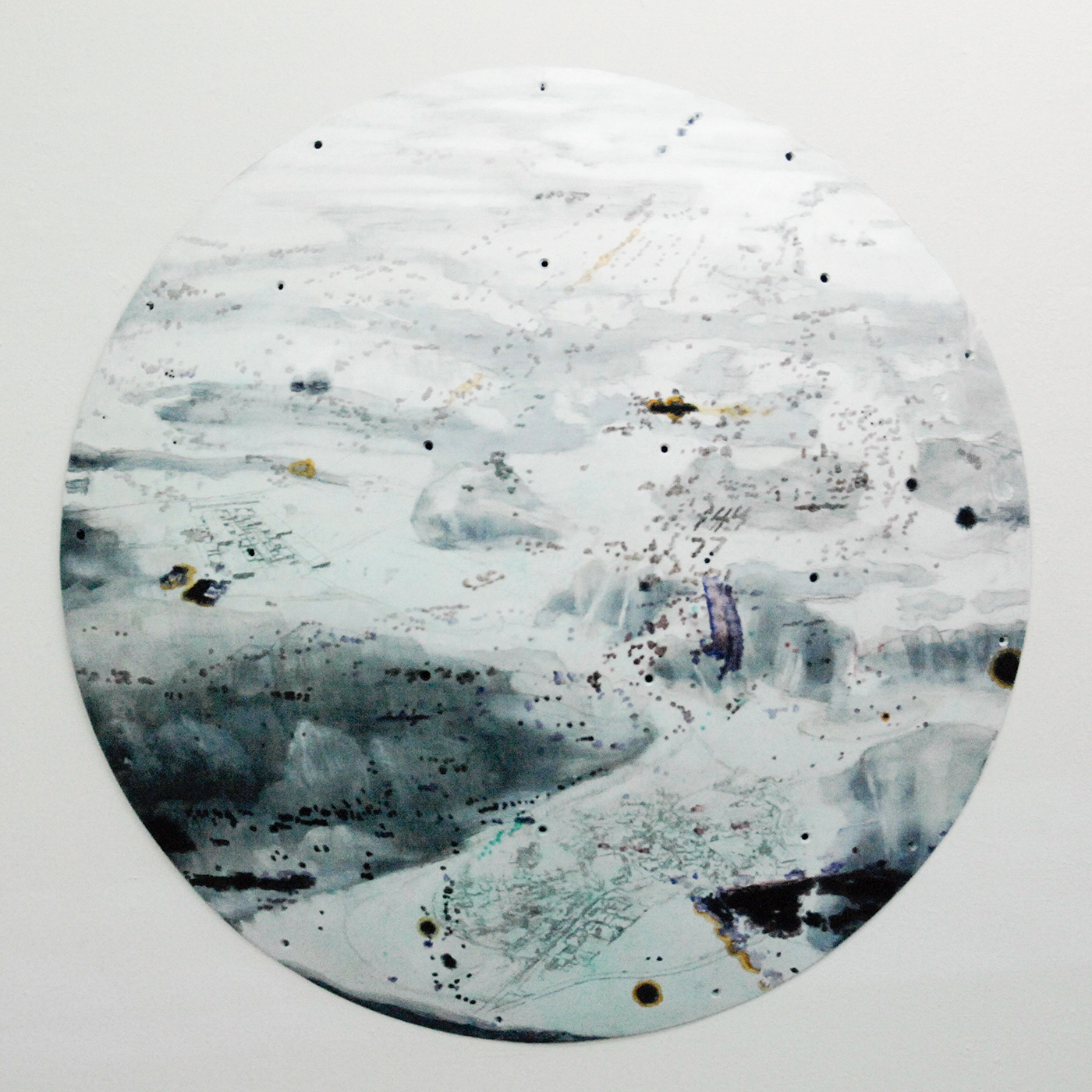 Marilou van Lierop – Lat 18 29,000488 Lon 11 6,204146 – 120cm Olieverf en potlood op polyester (detail)