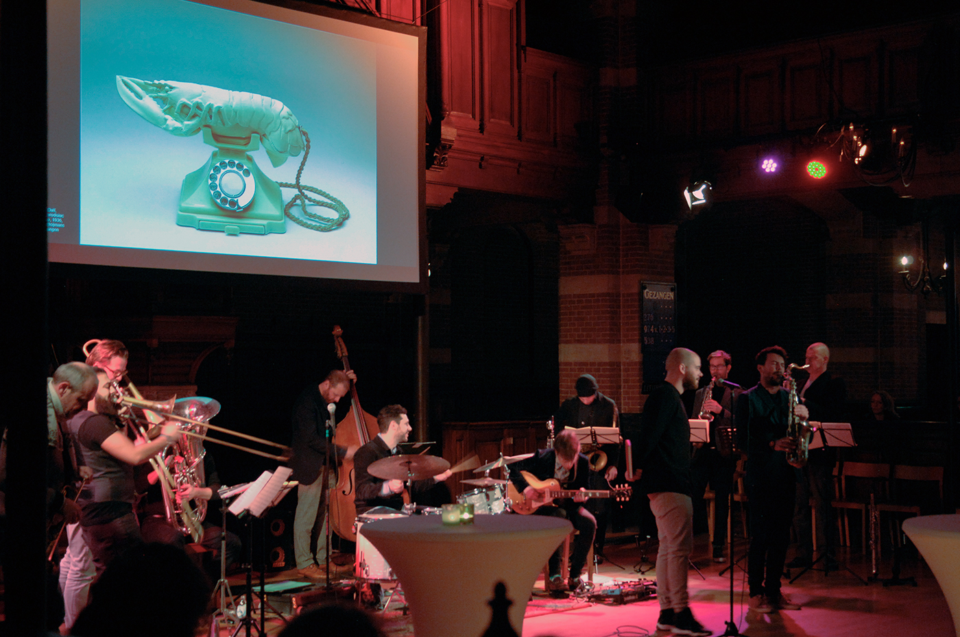 Dan bij de Arminius kerk (die tegenover het Boijmans), het New Rotterdam Jazz Orchestra die jazz spelen op basis van werken van Vincent van Gogh, Dali en Picasso.