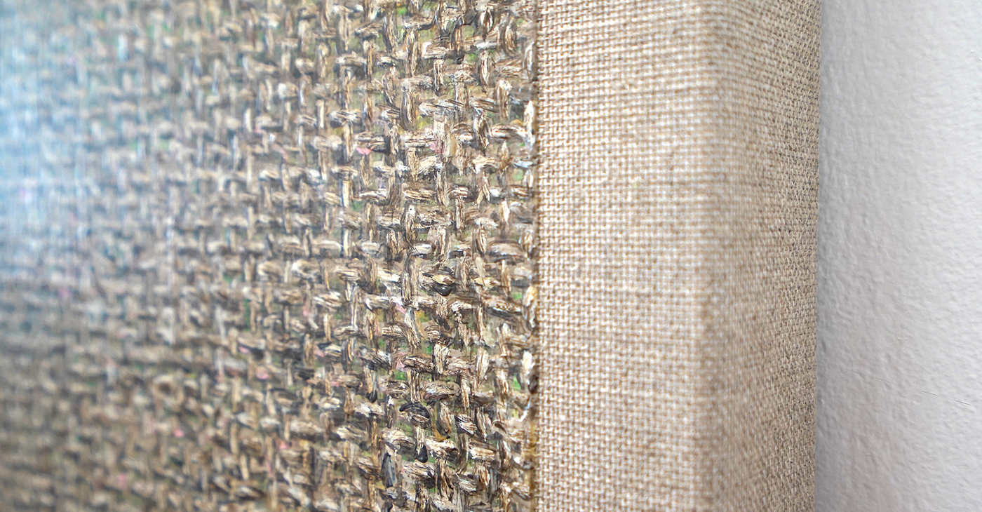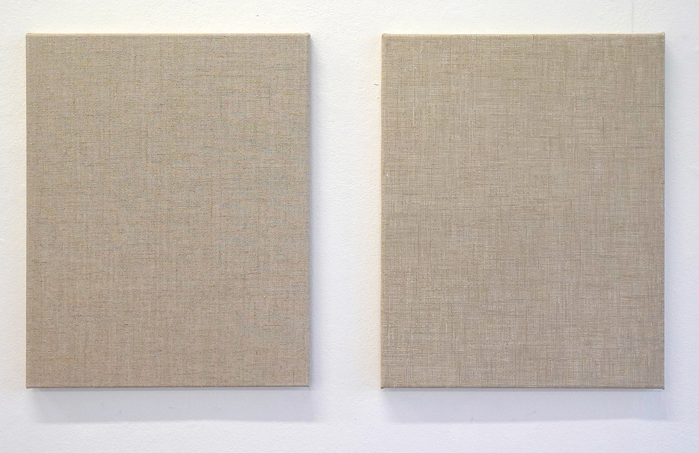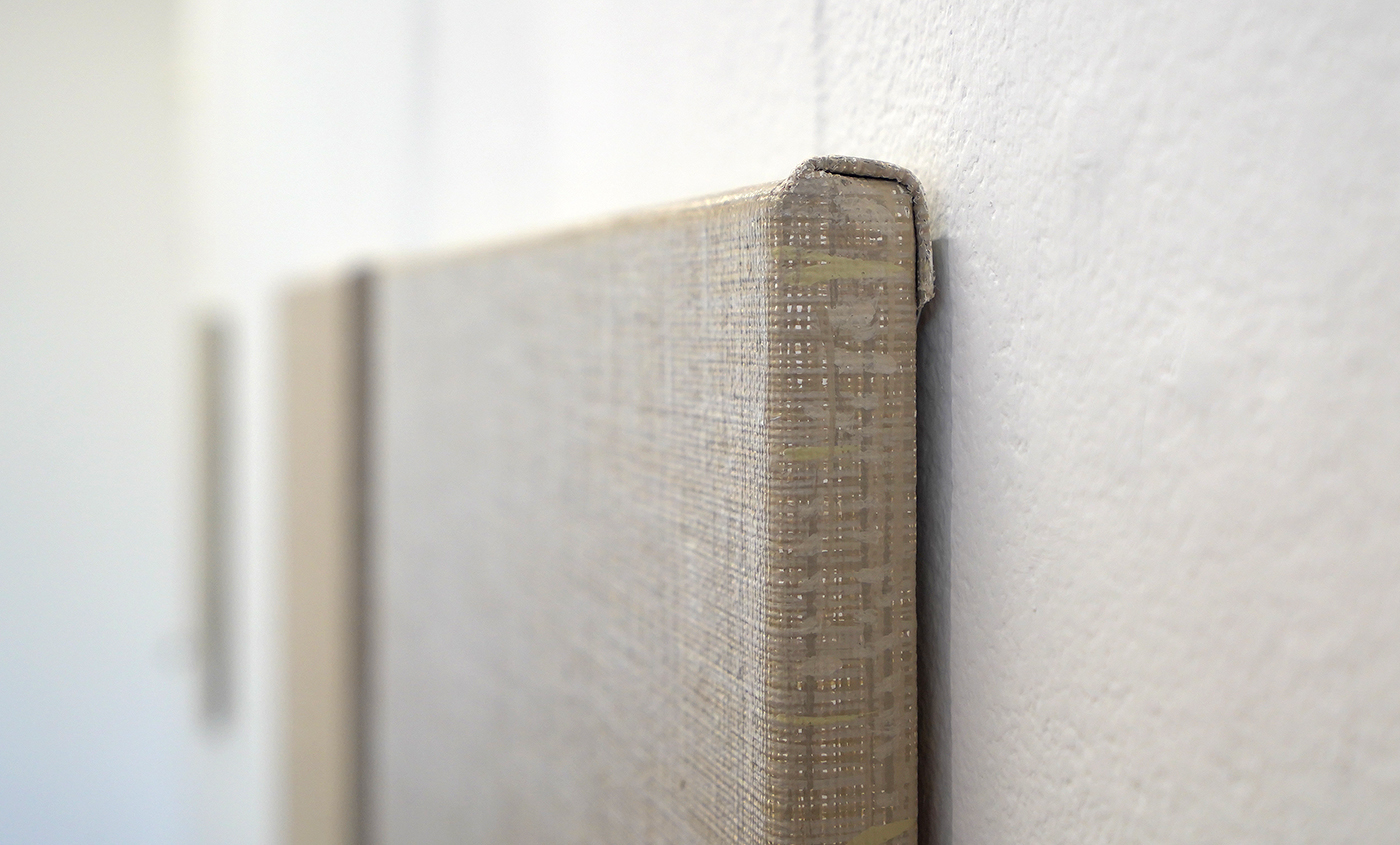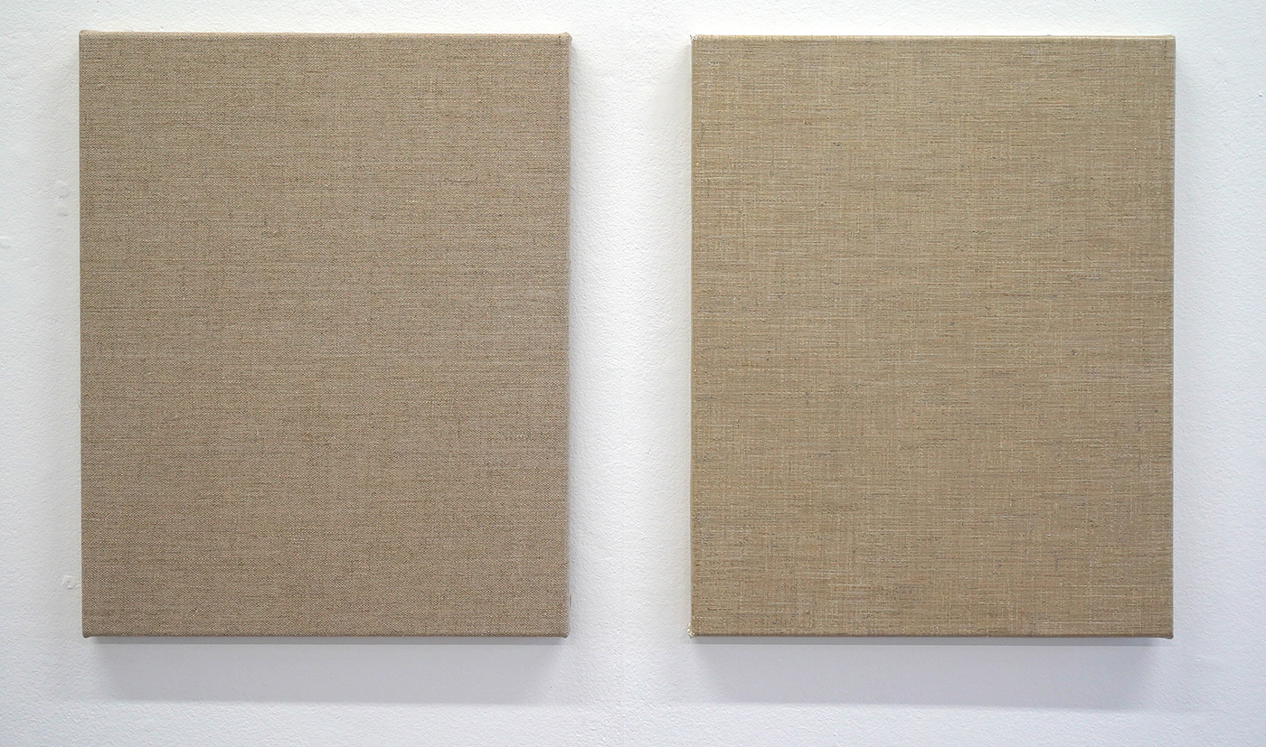 In de tweede galerieruimte toont Hutsch ogenschijnlijk blanco linnen doeken die klaar zijn om beschilderd te worden. Het startpunt van vele schilderijen is immers het linnen. Maar als je goed kijkt, dan zie je dat van de tweetallen maar steeds één doek onbewerkt is. Het andere doek is heel precies geschilderd alsof het het onbeschilderde linnen is. Het is een trompe-l’oeil, een oogbedriegertje. Het zet de toeschouwer even op het verkeerde been. Deze ogenschijnlijk lege doeken bevestigen dat ook dat het niet vanzelfsprekend is. Zodra een kunstenaar kiest om op een stuk linnen te werken van bepaalde afmetingen, bepaald dat al direct heel veel van dat uiteindelijke beeld. Niet alleen het formaat van het doek, maar ook de weving speelt door in het uiteindelijke resultaat.