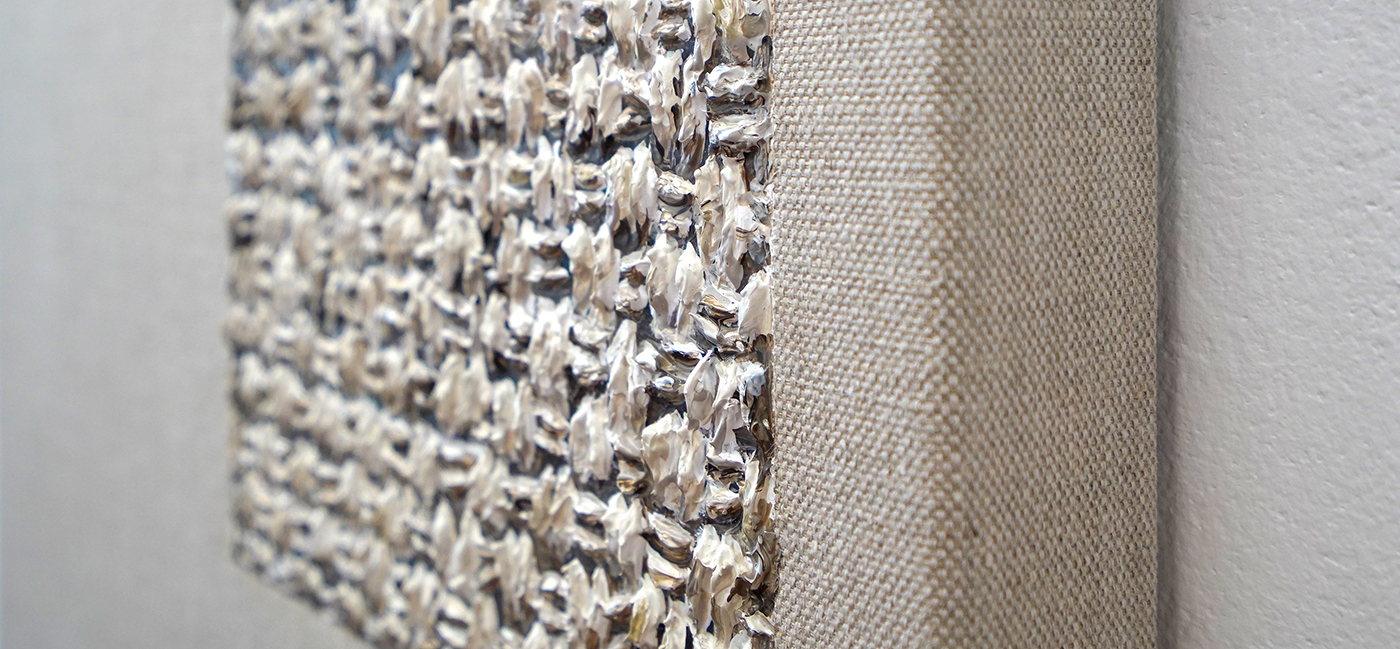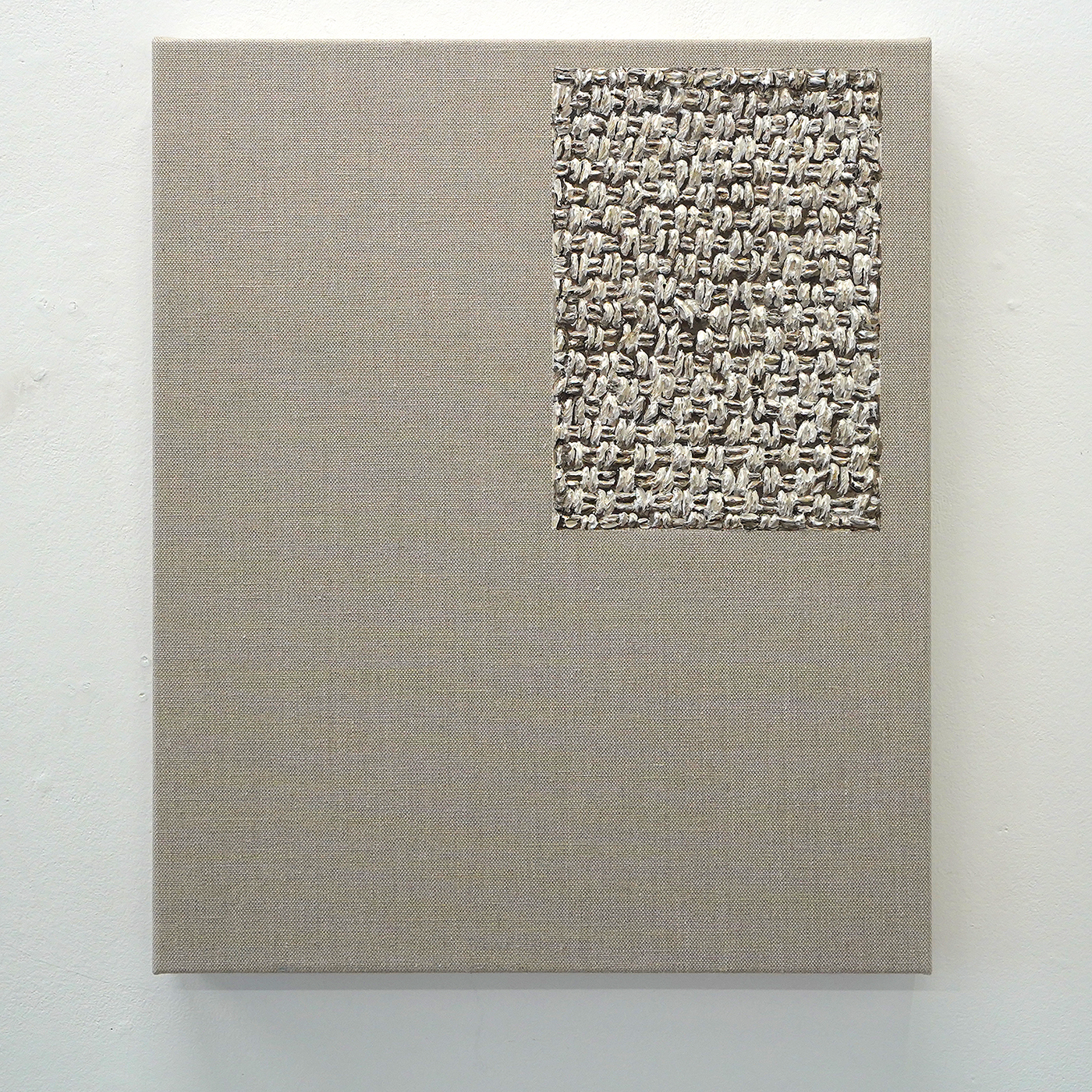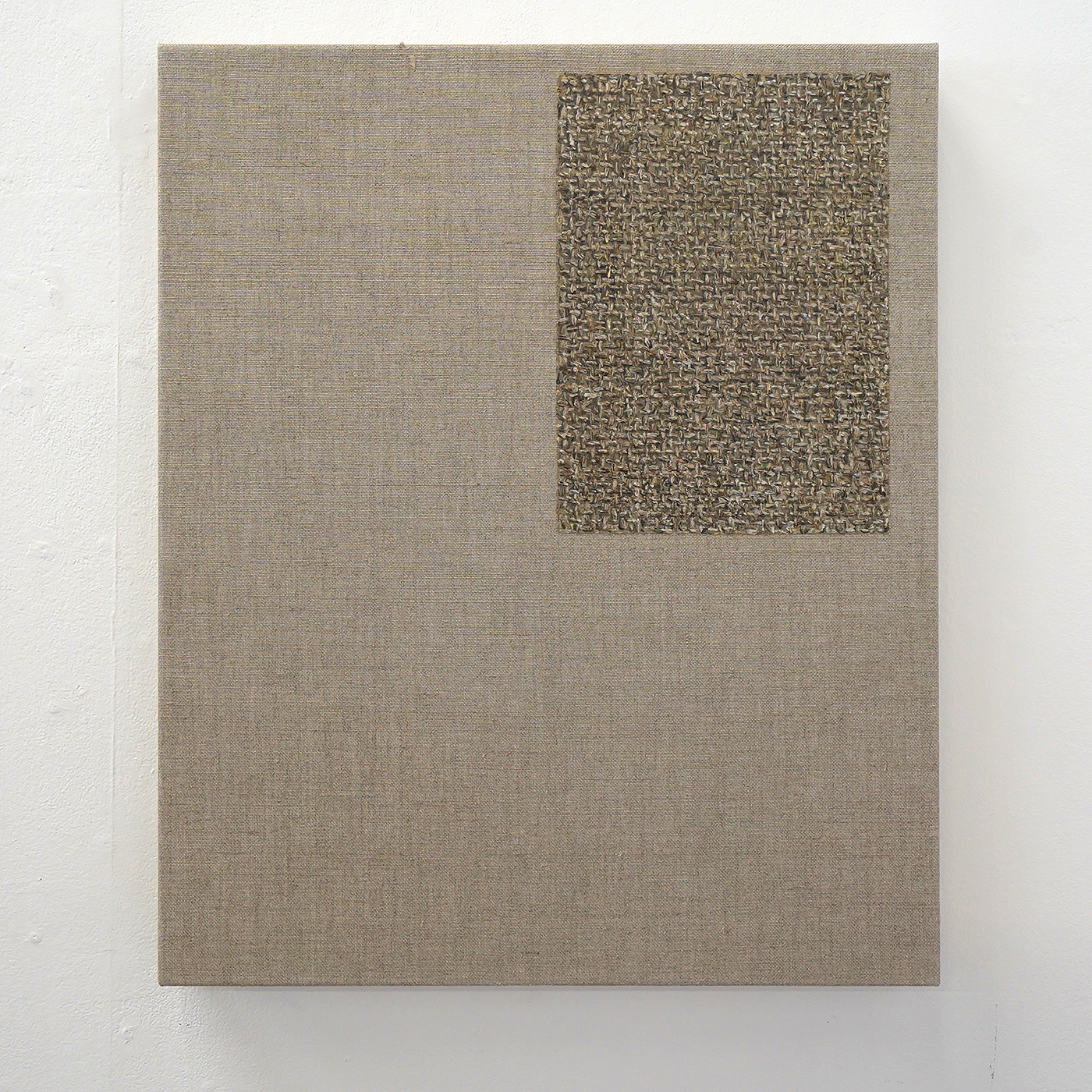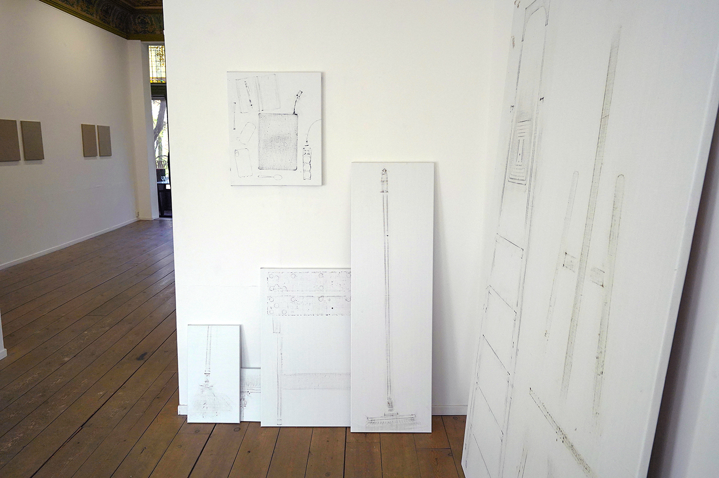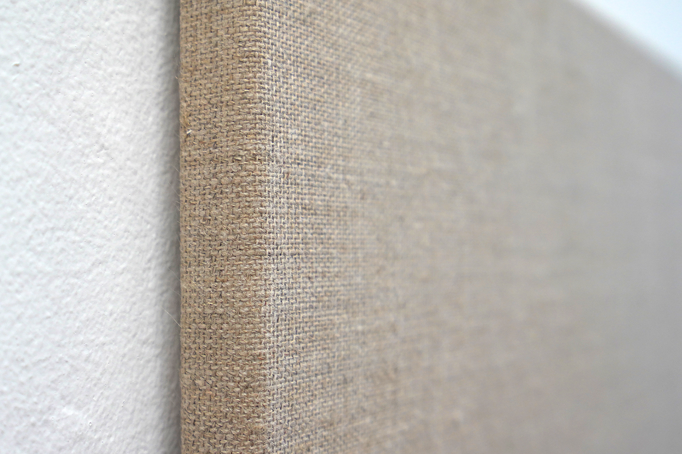 In de tweede galerieruimte toont Hutsch ogenschijnlijk blanco linnen doeken die klaar zijn om beschilderd te worden. Het startpunt van vele schilderijen is immers het linnen. Maar als je goed kijkt, dan zie je dat van de tweetallen maar steeds één doek onbewerkt is. Het andere doek is heel precies geschilderd alsof het het onbeschilderde linnen is. Het is een trompe-l’oeil, een oogbedriegertje. Het zet de toeschouwer even op het verkeerde been. Deze ogenschijnlijk lege doeken bevestigen dat ook dat het niet vanzelfsprekend is. Zodra een kunstenaar kiest om op een stuk linnen te werken van bepaalde afmetingen, bepaald dat al direct heel veel van dat uiteindelijke beeld. Niet alleen het formaat van het doek, maar ook de weving speelt door in het uiteindelijke resultaat.