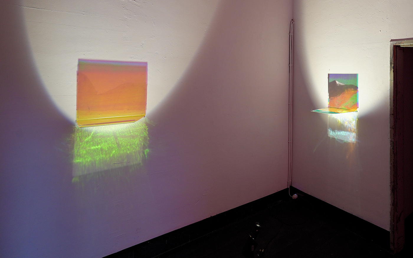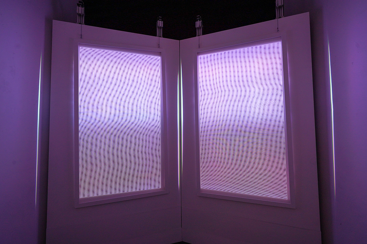Sommige kunst doet dat ook met elkaar. Ze hebben op het eerste gezicht bar weinig met elkaar van doen, maar als je ze één voor één na elkaar ziet worden het logische verhalen en ontstaat er een onderling verband. Ze vormen tezamen een visuele resonantie. Het werk van Roos van Haaften is totaal anders als dat van Rob Bouwman. De ene maakt lichtcomposities waaruit heuse landschappen geprojecteerd worden, de ander maakt abstracte schilderijen vol van kleur en textuur. In deze groepstentoonstelling gaan ze bijna naadloos in elkaar over, om vervolgens te veranderen in het werk van Philip Vermeulen en Oscar Peters.