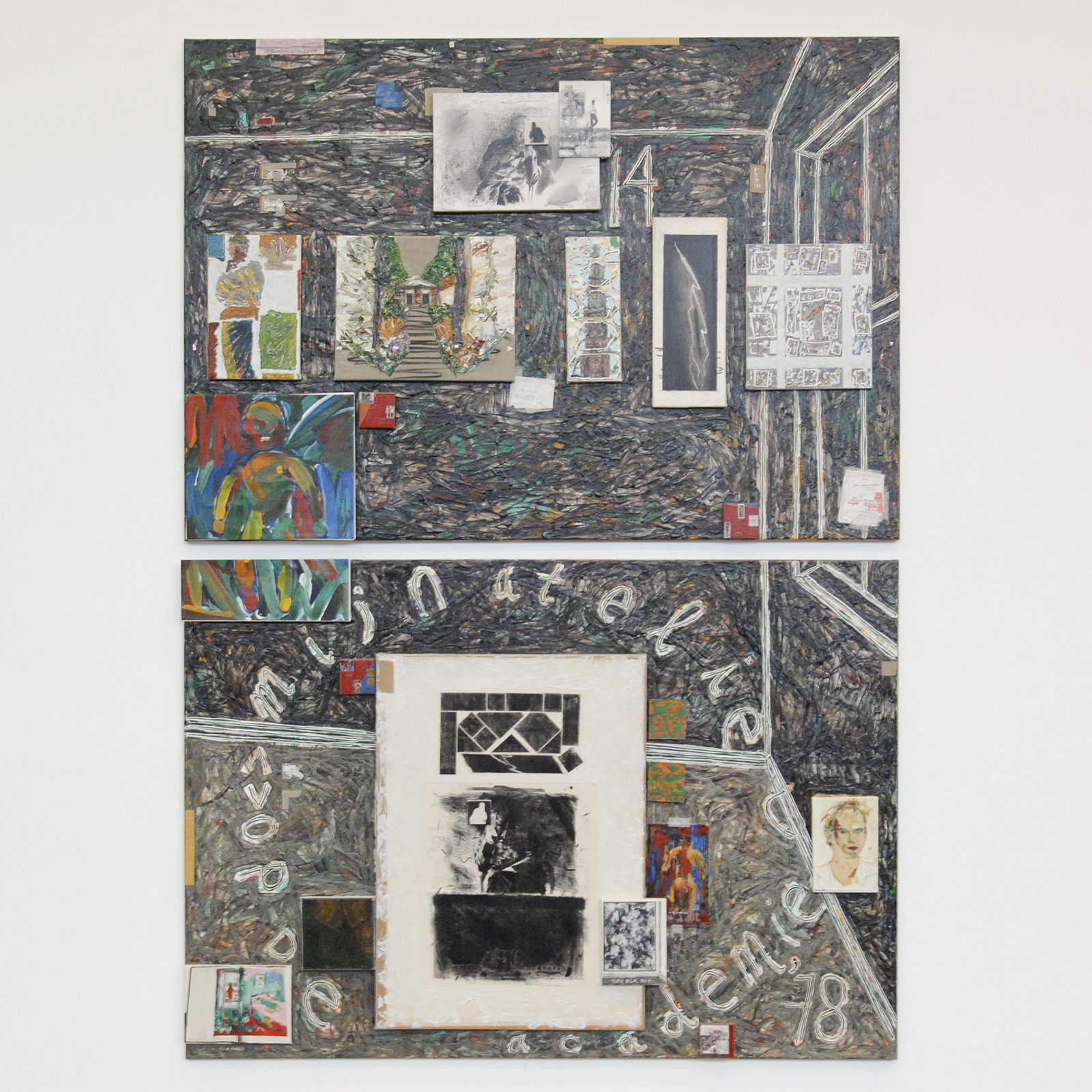 Aart Houtman – Atelierschilderij (Mijn atelier op de academie en in 2014 (44) – 286x200cm Acrylverf en olieverf op linnen 2014