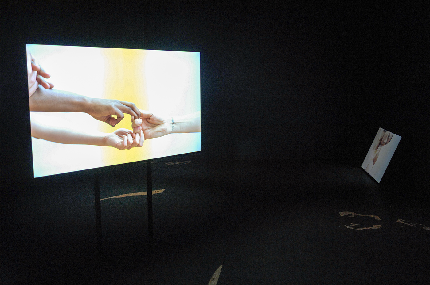 De installatie van Katarina Zdjelar is een meer traditionele ‘beeldschermen in black cube’ presentatie. Enkel de houtsnedes in de vloer zijn wat ongebruikelijk. De houtsnedes verwijzen naar Kathe Kollwitz die op haar beurt Dore Hoyer inspireerde voor haar choreografieën die ze in 1945 in haar dansschool voor vrouwen ontwikkelde. Die choreografie was weer inspiratiebron voor de films van Zdjelar. Ondanks dat de verwijzingen nogal gezocht overkomen levert het een poëtische installatie op.