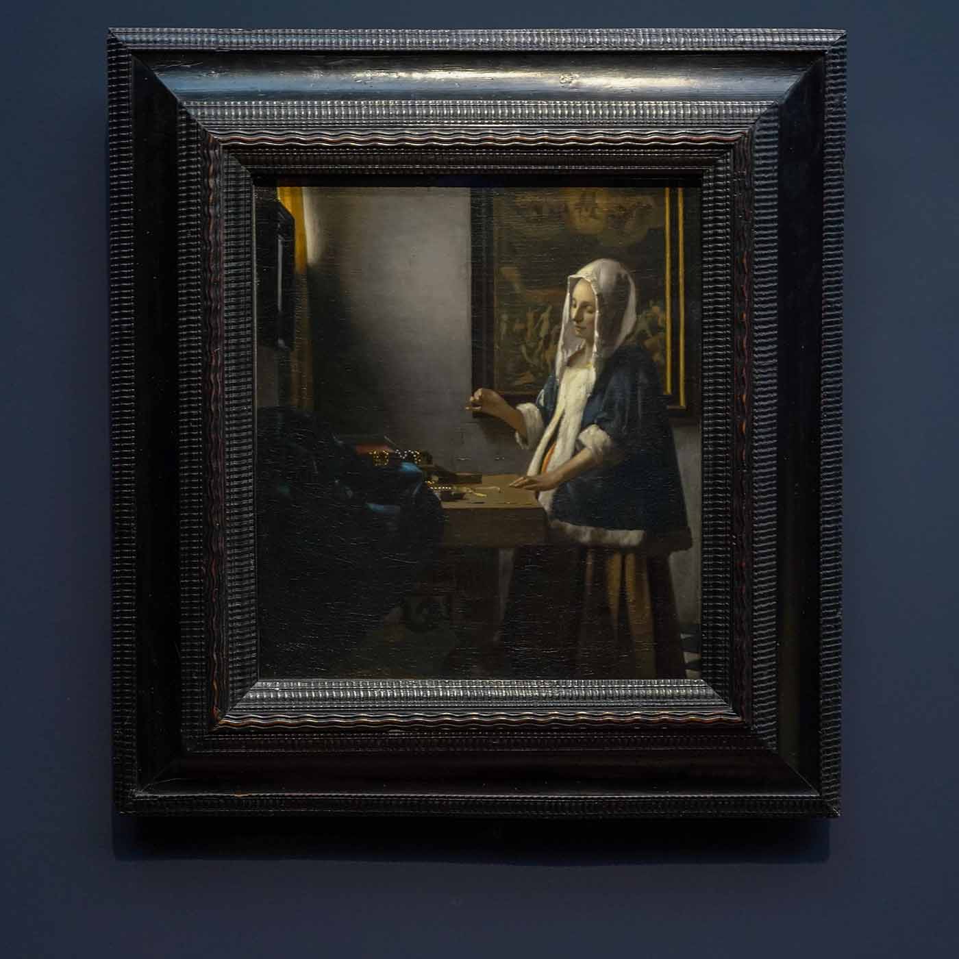 Dus waarom zou je gaan? Al die reproducties verpesten hoe het schilderij er eigenlijk uit ziet, je verwacht foto’s, maar er zijn meer dan genoeg dikke klodders verf te zien. Ook worden de reproducties vaak veel te licht afgedrukt, terwijl Vermeer eigenlijk nergens echt puur wit gebruikt lijkt te hebben, de schilderijen zijn veel grijzer en donkerder dan je zou verwachten. Hier ervaar je Vermeer echt, niet als beeld, maar als fysiek object. Het zijn geen traag en precies geschilderde werken, het zijn vlotte, ruimtelijke schilderijen. Geen gepriegel, maar wonderlijk raak, waarna van een afstand alles in elkaar lijkt te schuiven tot een prachtig beeld. Niet toevallig raak, maar steeds weer opnieuw werk voor werk.