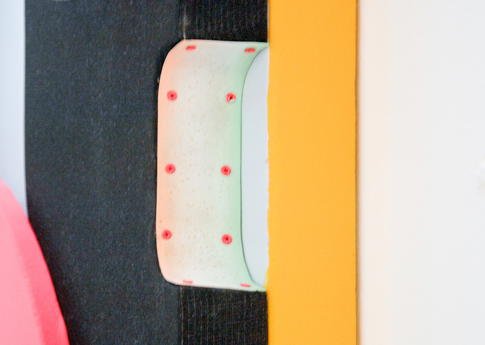 Henk-Sjoerd Hinrichs – Cozyhole Koziol – 120x60cm Zeil op hout en plastic & Don’t Repeat This – 120x100cm Synthetisch textiel op hout, plastic, lak, glas, was, pigment en spuitbus (detail)