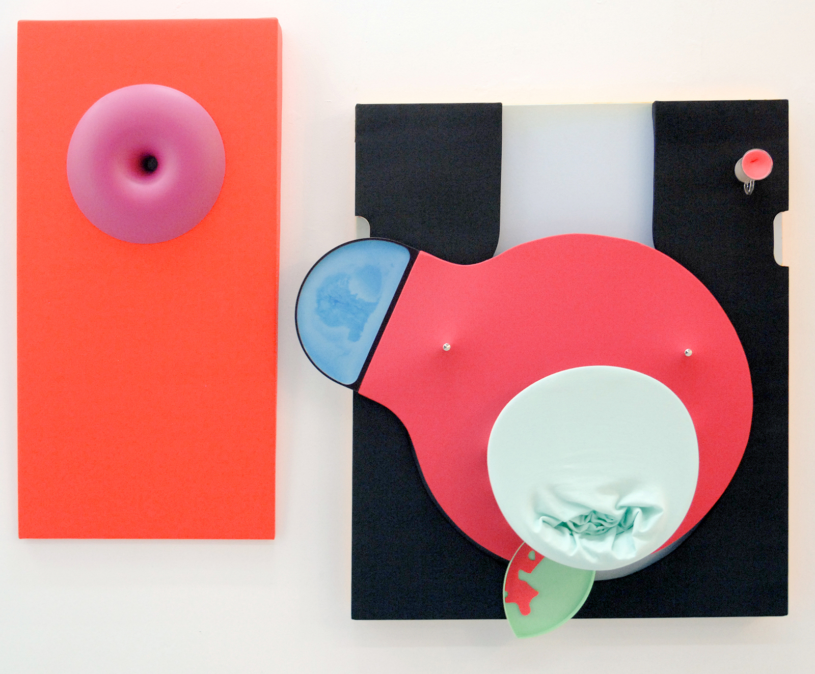 Henk-Sjoerd Hinrichs – Cozyhole Koziol – 120x60cm Zeil op hout en plastic & Don’t Repeat This – 120x100cm Synthetisch textiel op hout, plastic, lak, glas, was, pigment en spuitbus