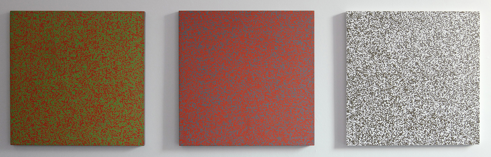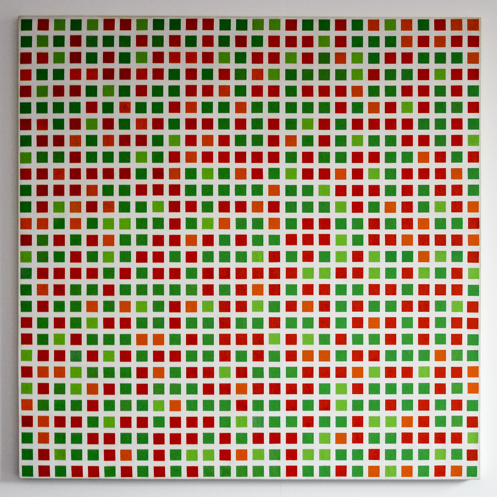 Francois Morellet – Repartition aleatoire de carres 40 rouges, 40 verts, 10 oranges, 10 verts clairs – Olieverf op doek, 1971