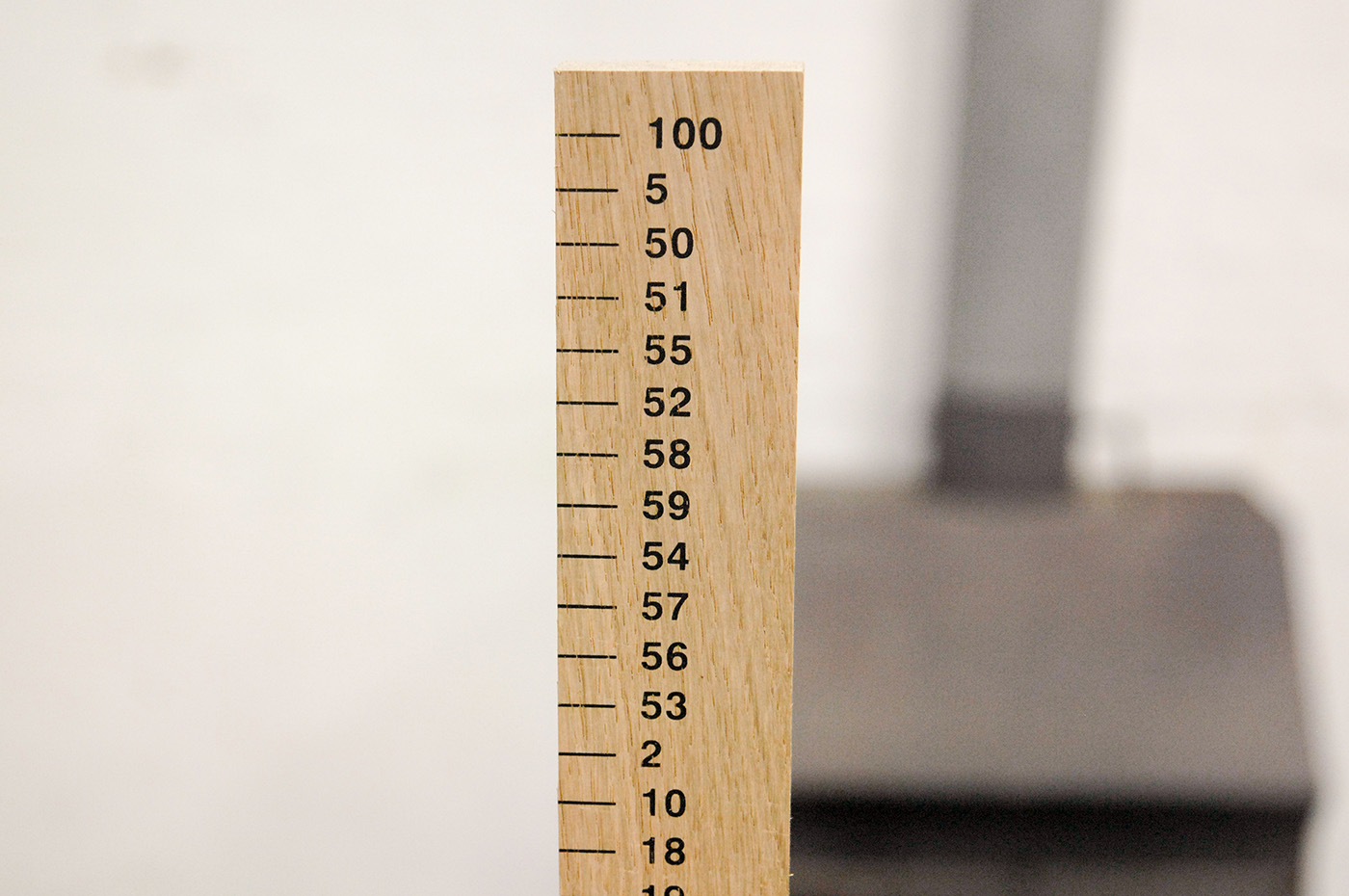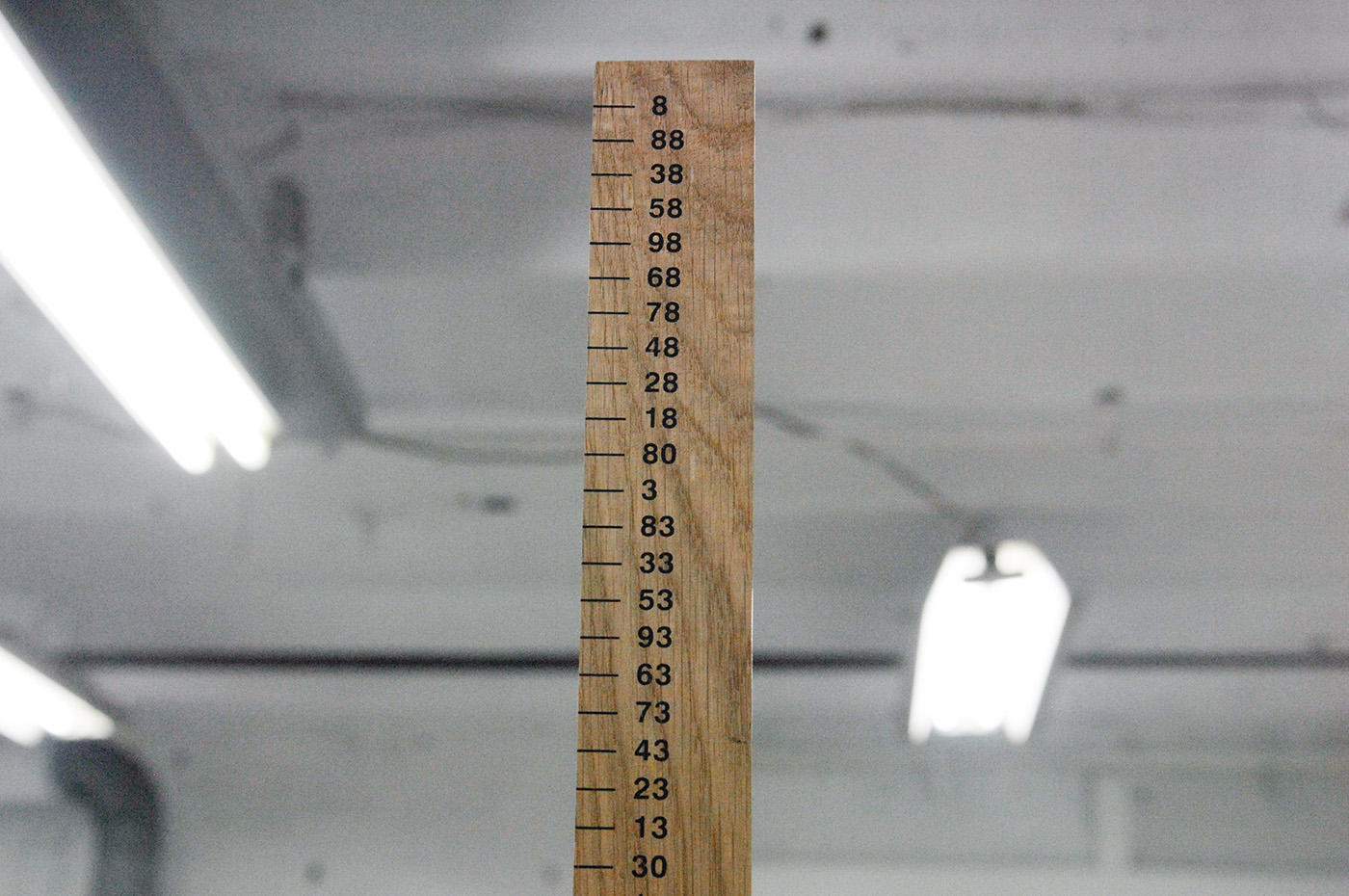 Evelin Brosi & Elvis Bonier – Une Regle Alphabetique Pour Mesurer d’ A rriere en A vant – Zeefdruk op eiken lat