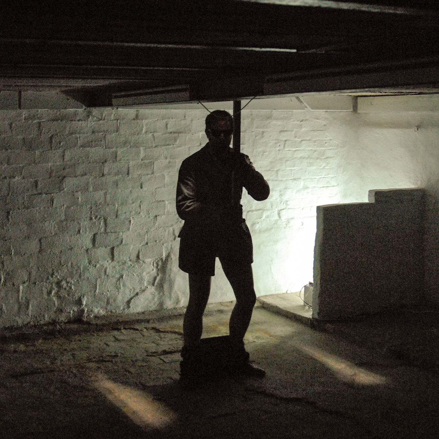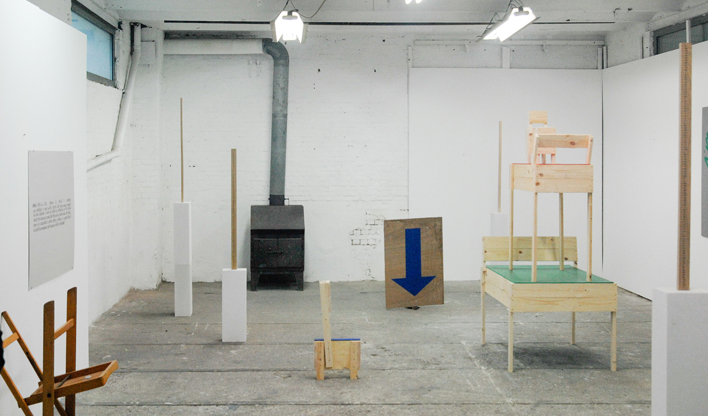 Evelin Brosi & Elvis Bonier – Neerwaarts & Opwaarts & De Schakelaar – Acrylverf op multiplex, broek en enkels en zwartwit film projectie
