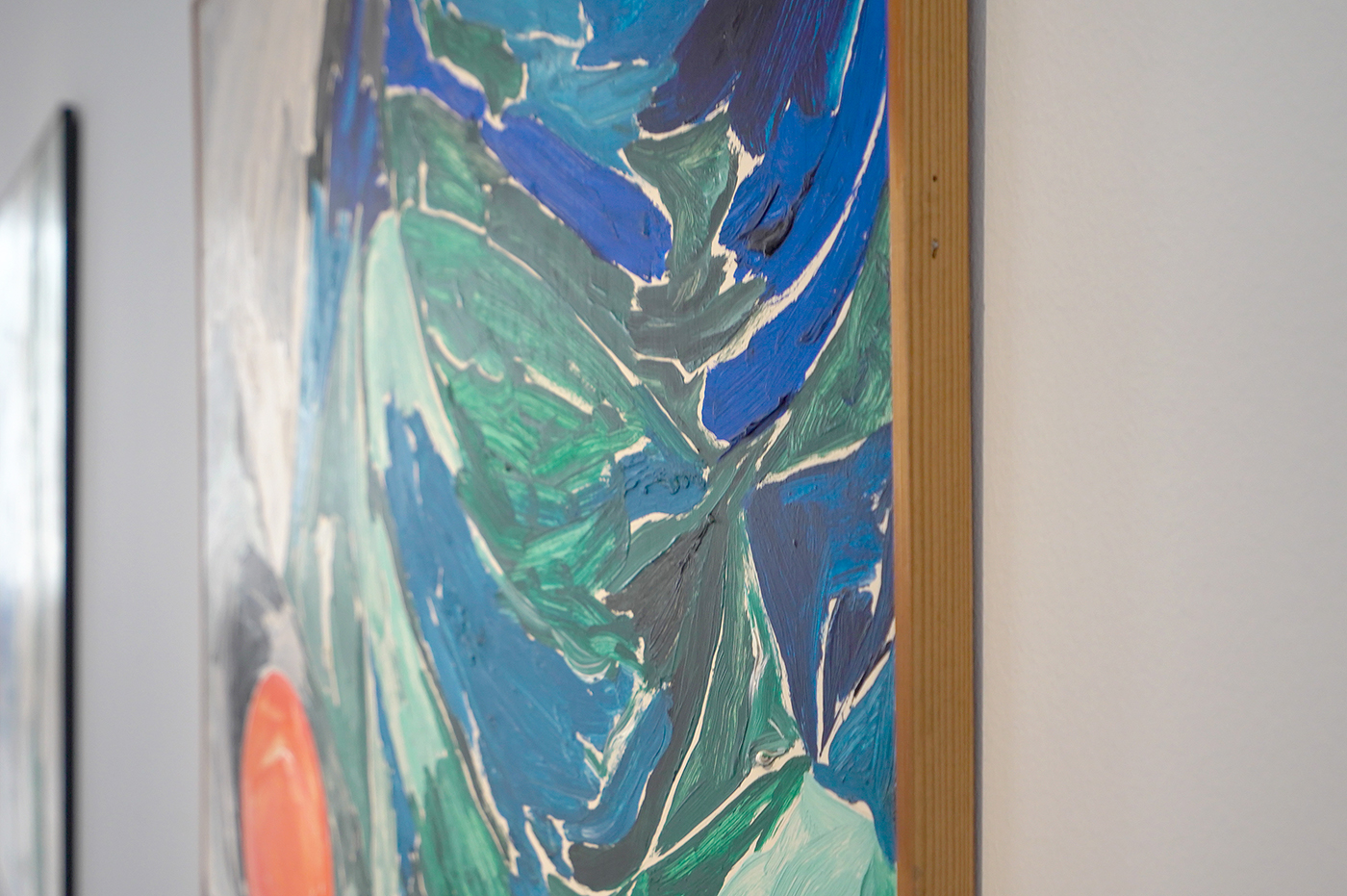 (Bij de foto’s verlies je helaas de kleurkracht en het matte effect van haar schilderijen, zelf gaan kijken is dus de aanbeveling.)