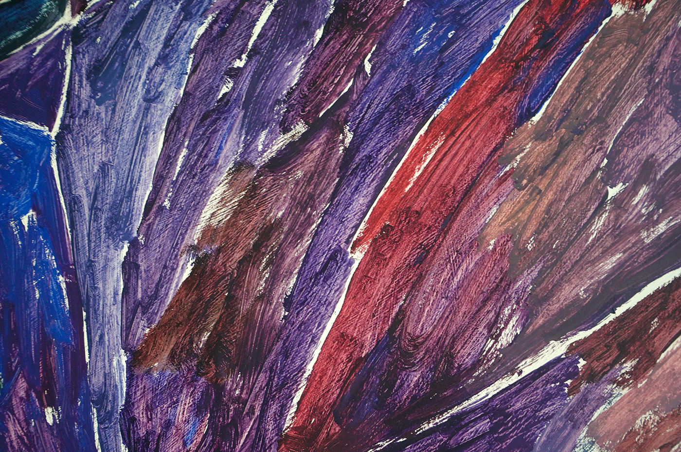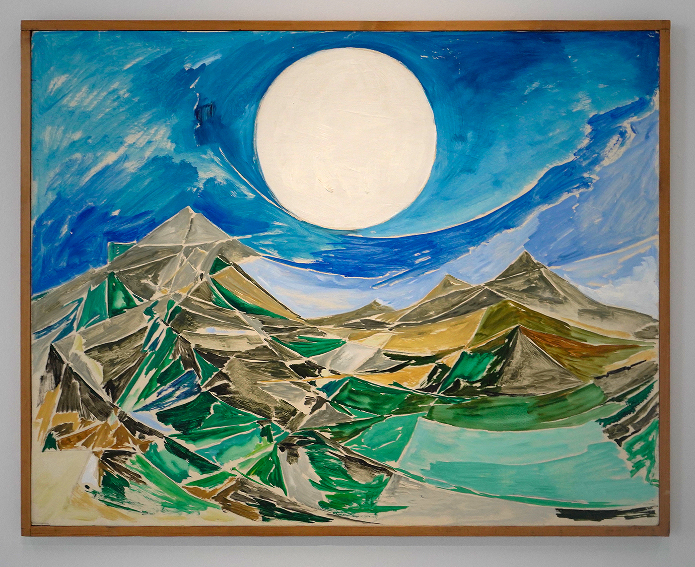 Het levert bij het Stedelijk Museum Schiedam een onverwachtse ontmoeting op met Alfelt. Niet als het buitenbeentje van Cobra, maar juist van een fenomenale schilder van spirituele maanlandschappen en bergen.