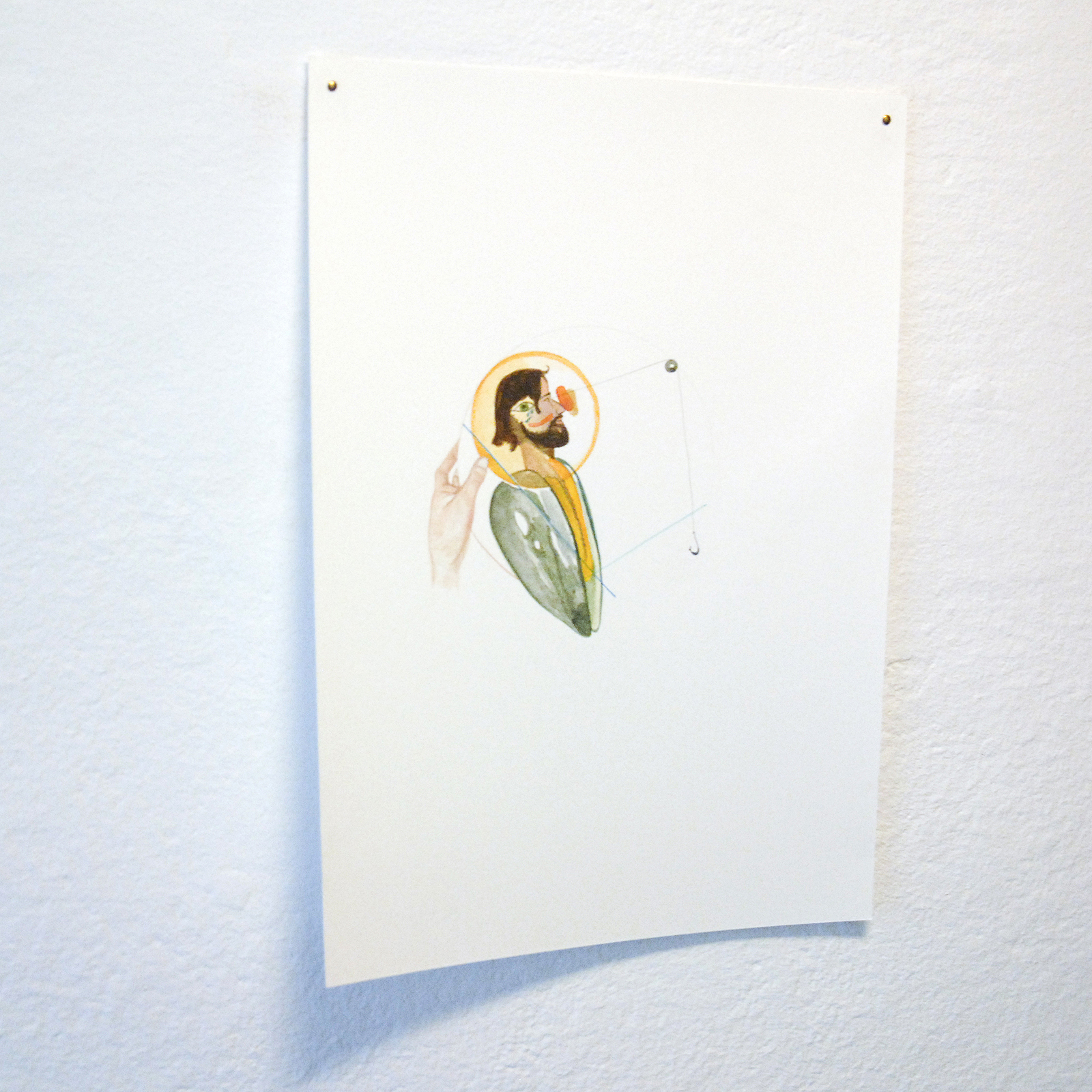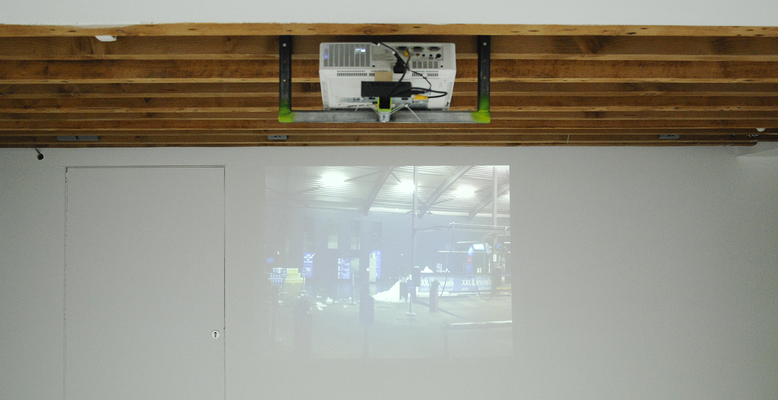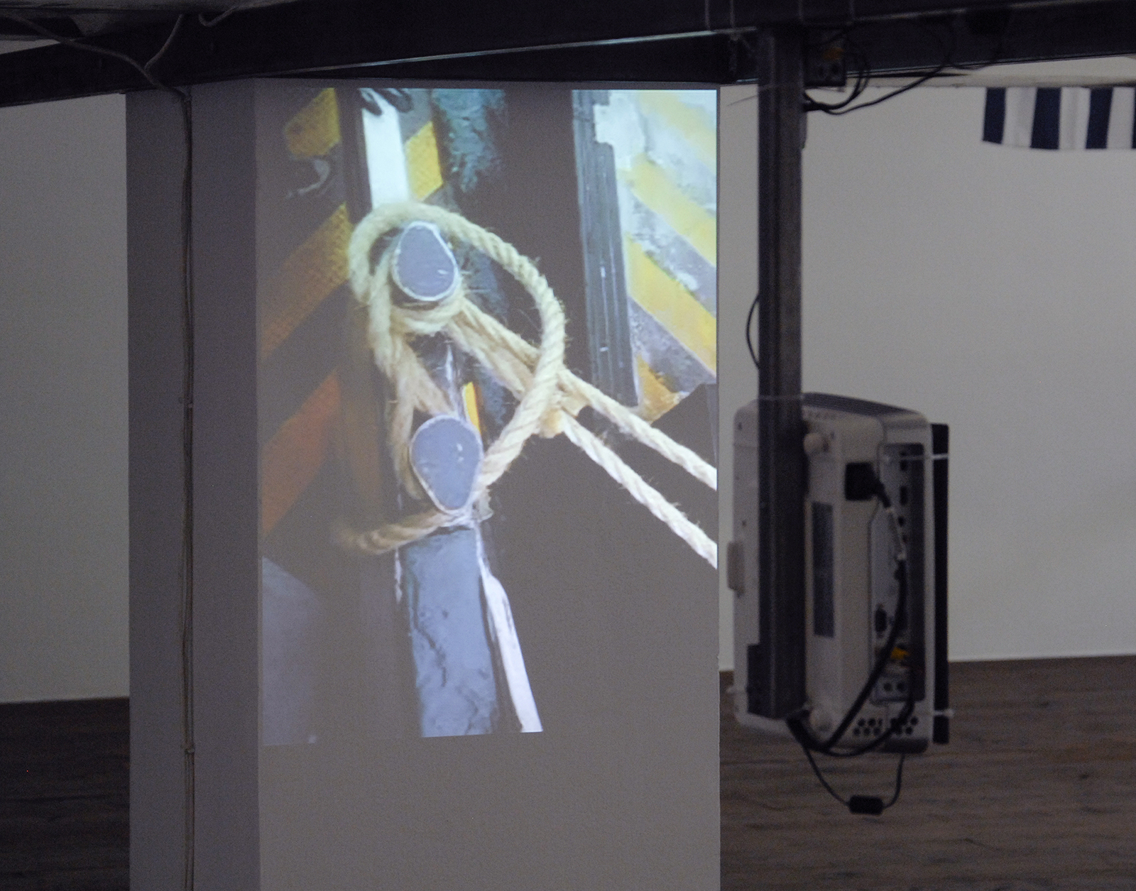 Het grote gebaar is het zwevende plateau in de ruimte op ooghoogte. Je kunt er net overheen kijken, waar van alles gebeurt, maar eronder zijn de video’s te zien. Maar, voor die video’s moet je dus flink bukken waarmee je als toeschouwer tegemoet moet komen aan de voorwaarden die De Jonghe oplegt. De poetische gebaren zijn daar ook, details in de vorm van een licht verbogen TL bij de ingang, of een kaars die net niet uitgeblazen wordt door een machine. Absurde momenten zijn er bij een koffiezetapparaat die fungeert als sokkel voor een sculptuur. Of potloden die een tekentafel maken. Ook het afsluiten van de gang waarop je de schaduw van het enige echt traditionele sculptuur in de hele tentoonstelling ziet is zowel poetisch als institutioneel van aard. Alleen al voor het maken van een tentoonstelling als geheel krijgt De Jonghe hier dus 5 punten voor, en dan zijn we nog niet eens bij het werk aanbeland.
