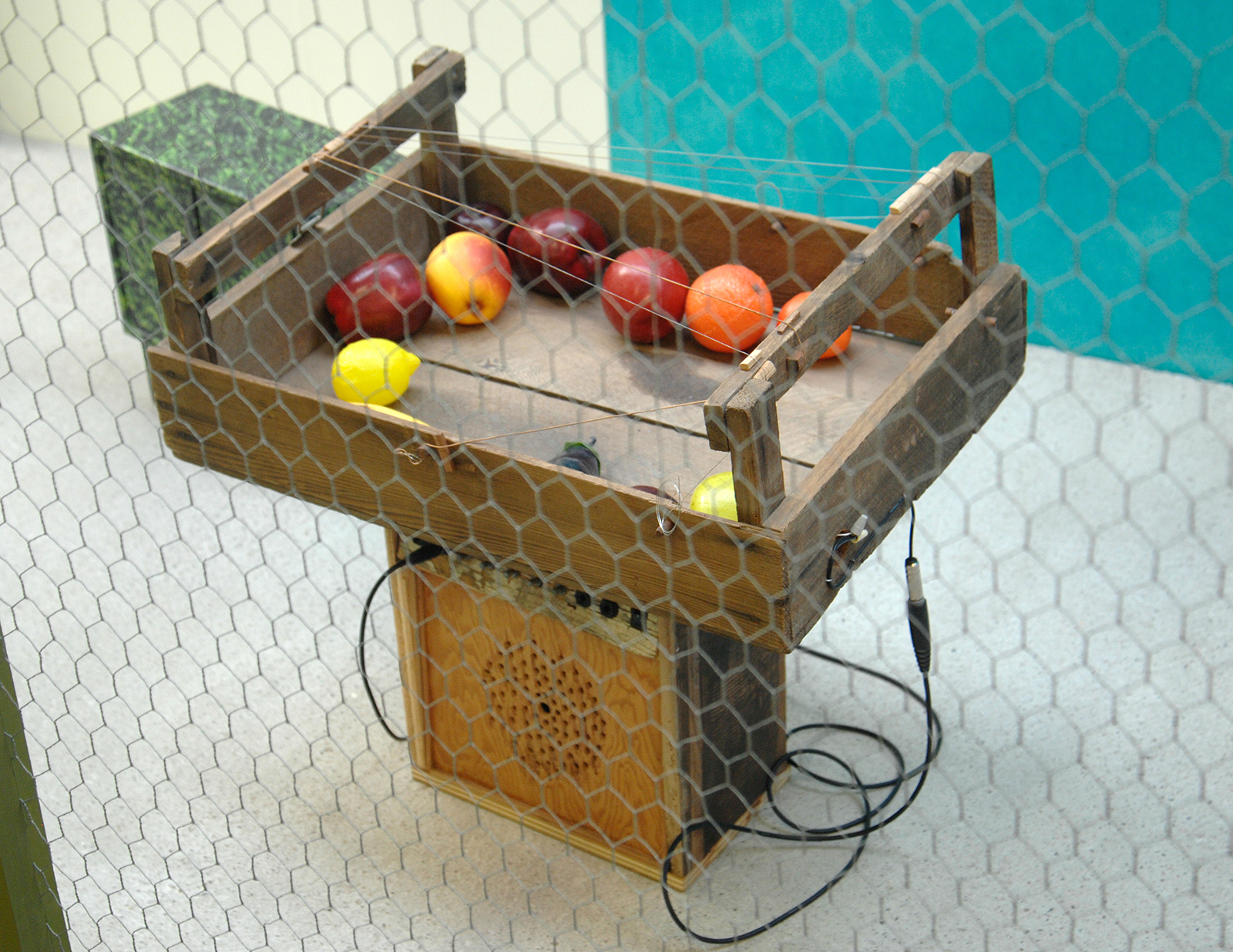 Ook de objecten die hij in de kooien stopt zijn vreemd. Het zijn ogenschijnlijk willekeurige materialen die samengevoegd worden tot muziekinstrument. Nu zal het muzikale aspect daarvan in een aantal gevallen wel meevallen, maar geluid produceren zal er prima mee lukken.