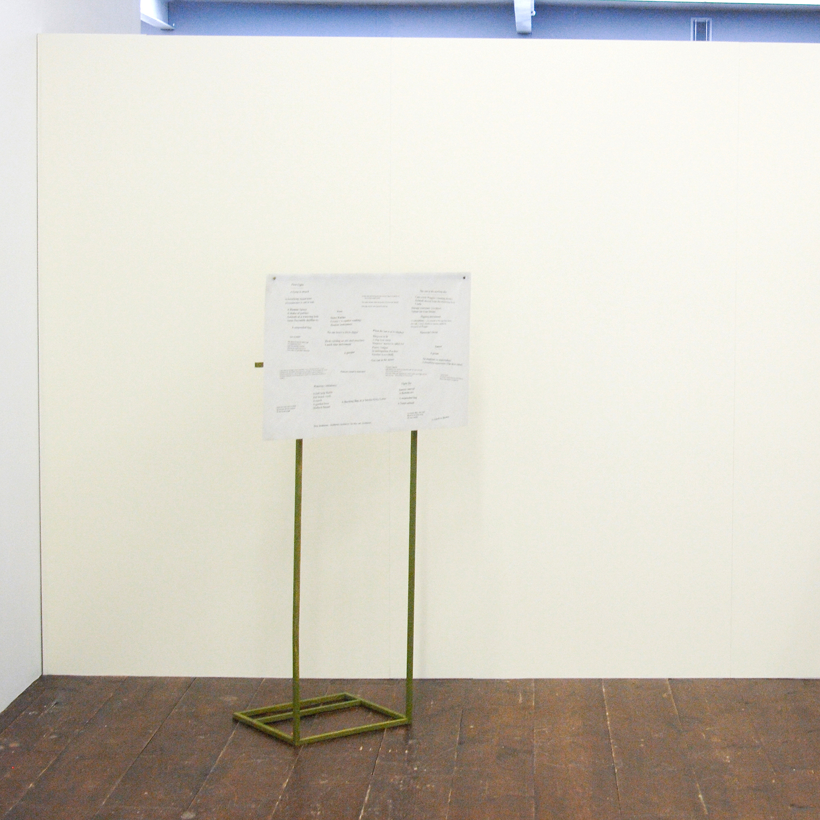 Gareth Moore – A Burning Bag as a Smoke-Grey Lotus (Compacted Earth, Concrete, Tempera, A Breathing Apparatus, A Garden Hose, Insect, A Horn, No one hears a Ditch Digger, Maxy, Mallet, A Drumming Noise) – Installatie (detail)