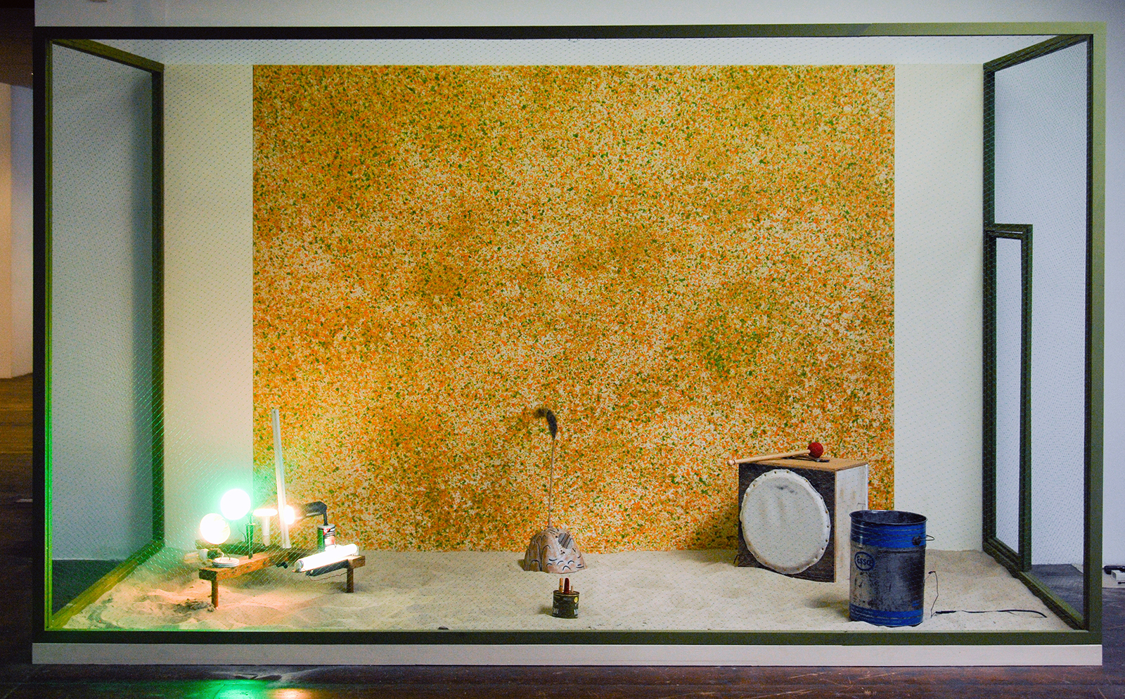 Gareth Moore – A Burning Bag as a Smoke-Grey Lotus (Sand, Fishfood, Amplifier, Cass Creek Waggler, Animals at Watering Hole, Vulcan, Diogenes, Mallet) – Installatie (detail)