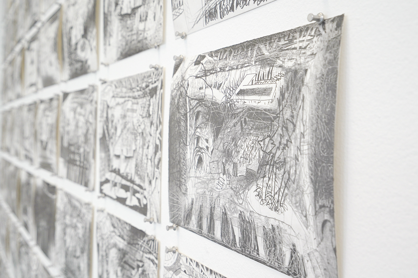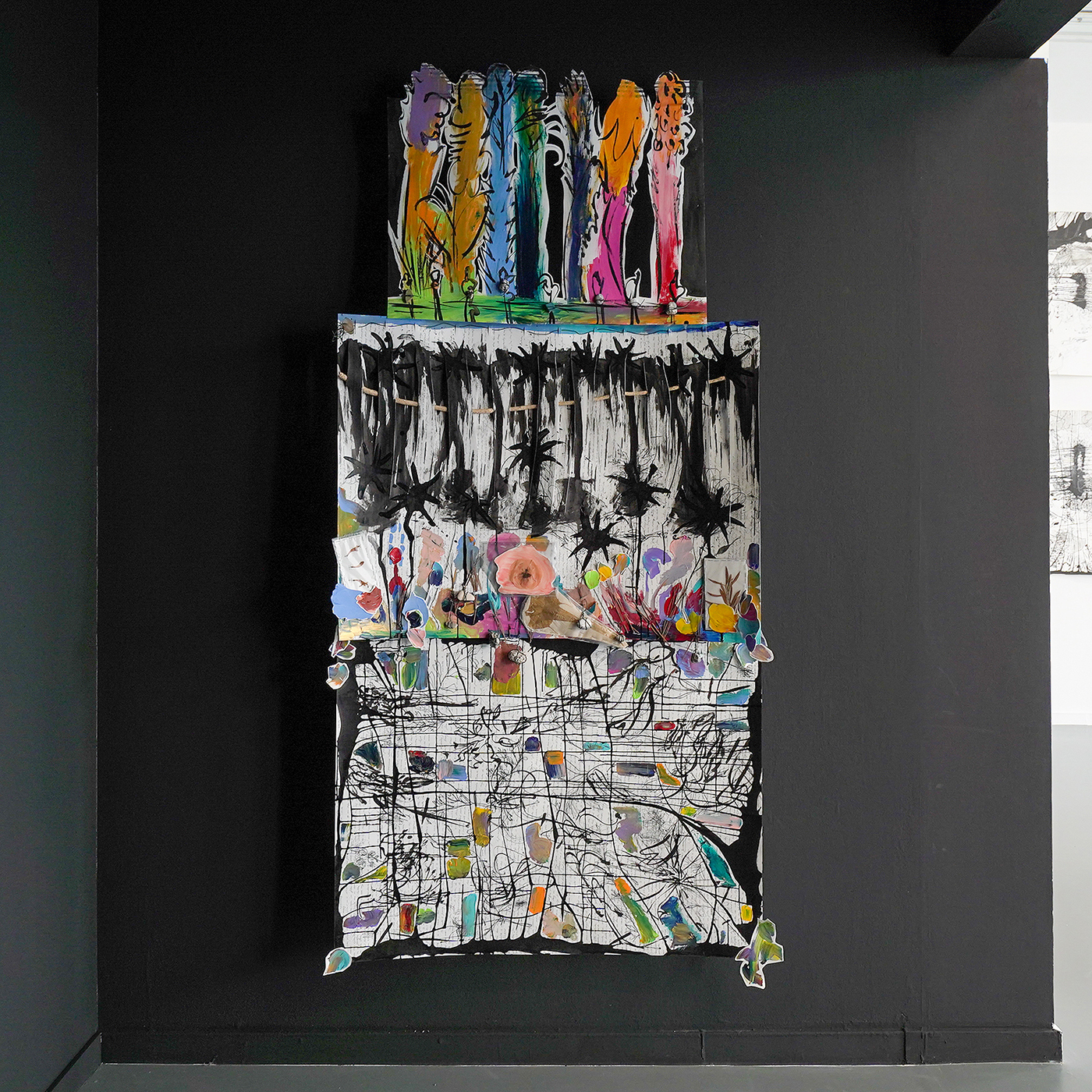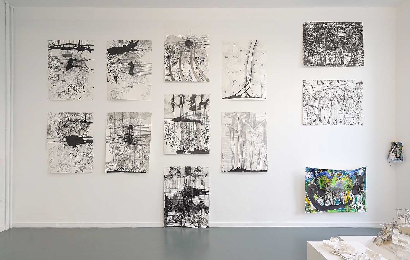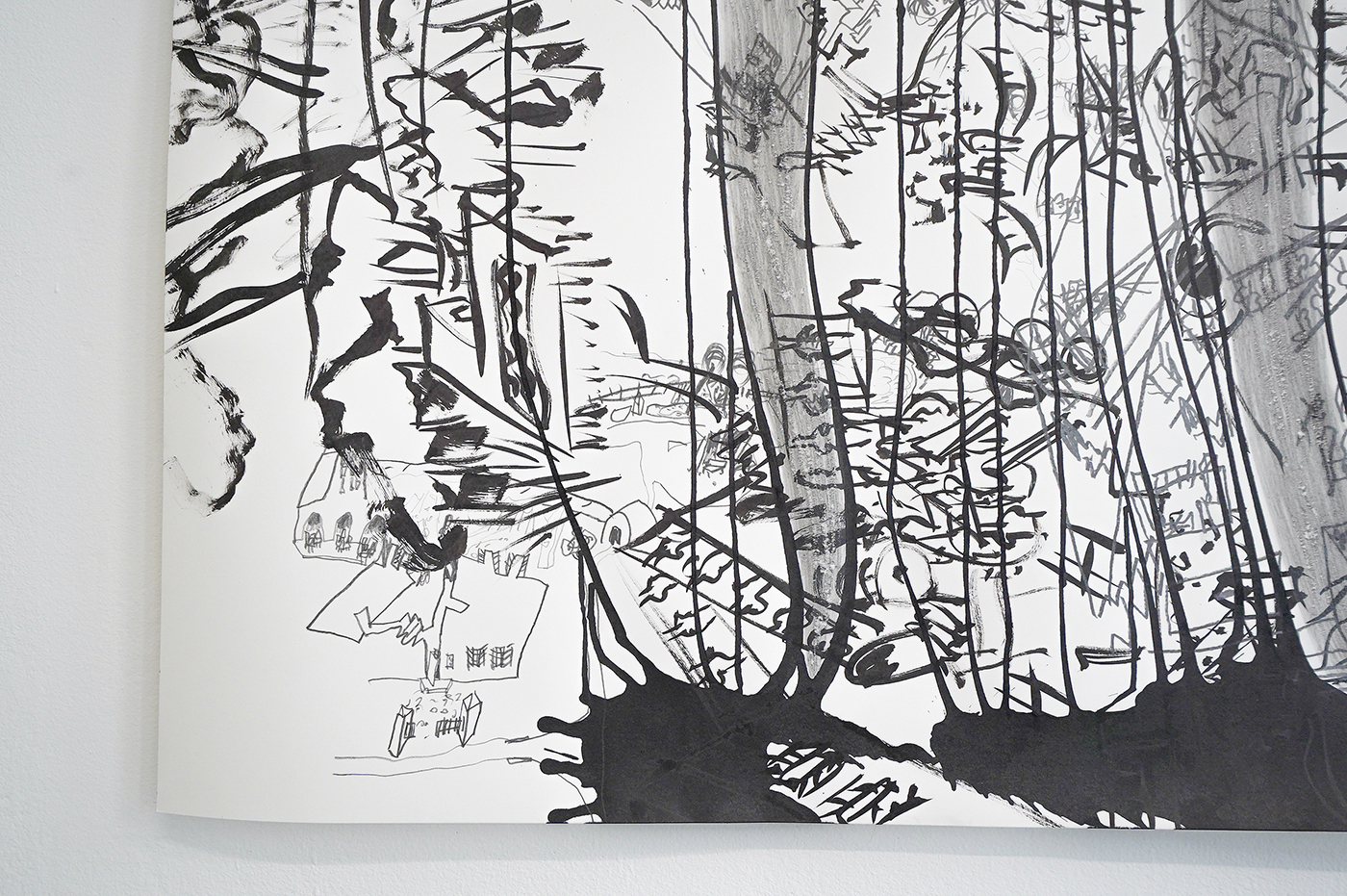 Het werk van Marjolijn van den Assem (1947) is intens. Al jaren lang werkt ze vanuit het gedachtengoed van de filosoof Nietzsche. Ze herschrijft hele boeken van de denker. Soms leesbaar, maar vaker niet en verandert de tekst naar beeld. Vrijwel altijd geschreven met inkt op papier, soms met een fijne pen, dan weer met een kwast. Soms wordt er in gesneden en weer aan elkaar verbonden met de nietmachine. Van megalomaan groot met grote gebaren, tot bedachtzaam schrijven en kleine collages.