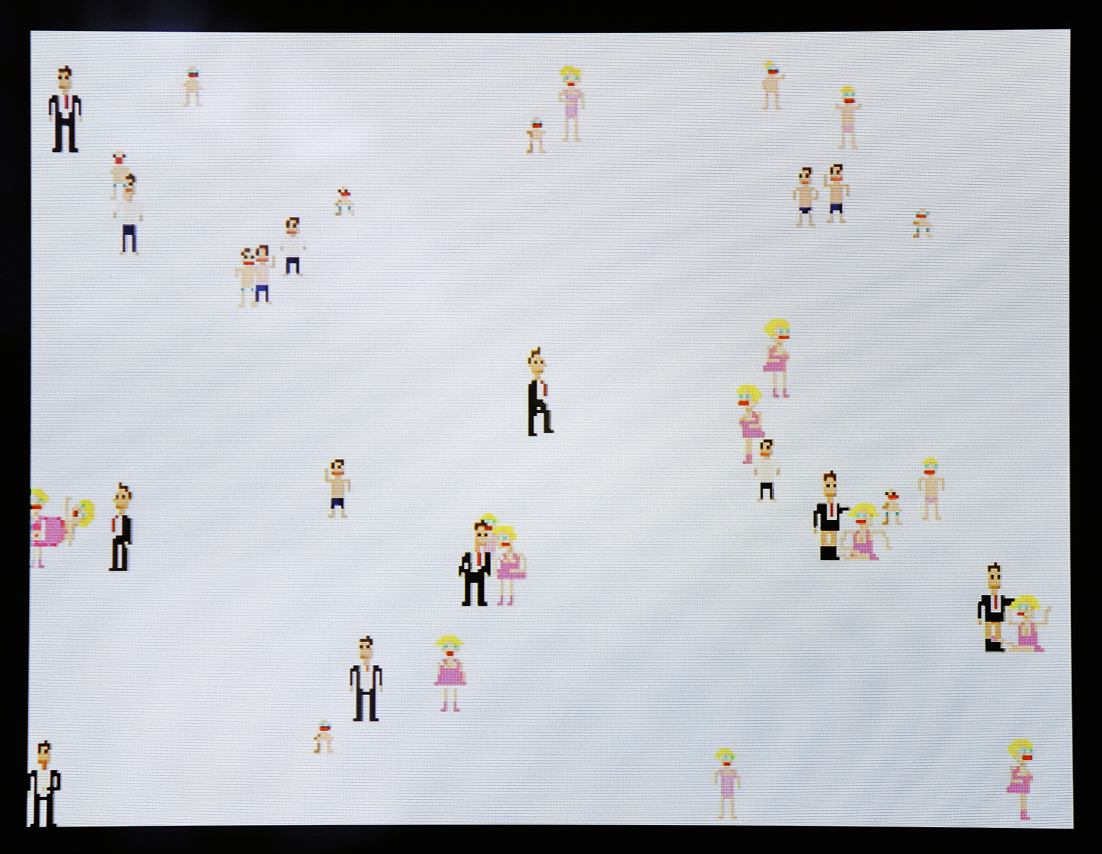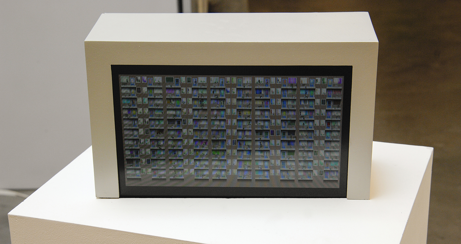 Nikki Koole maakt op basis van statistieken programma’s. Die programma’s draaien vervolgens op een beeldscherm en geven schijnbaar willekeurige uitkomsten die dus wel degelijk gebaseerd zijn op de werkelijkheid. De flat is representatief en zo blijken er nogal wat nachtbrakers in Nederland te zijn.