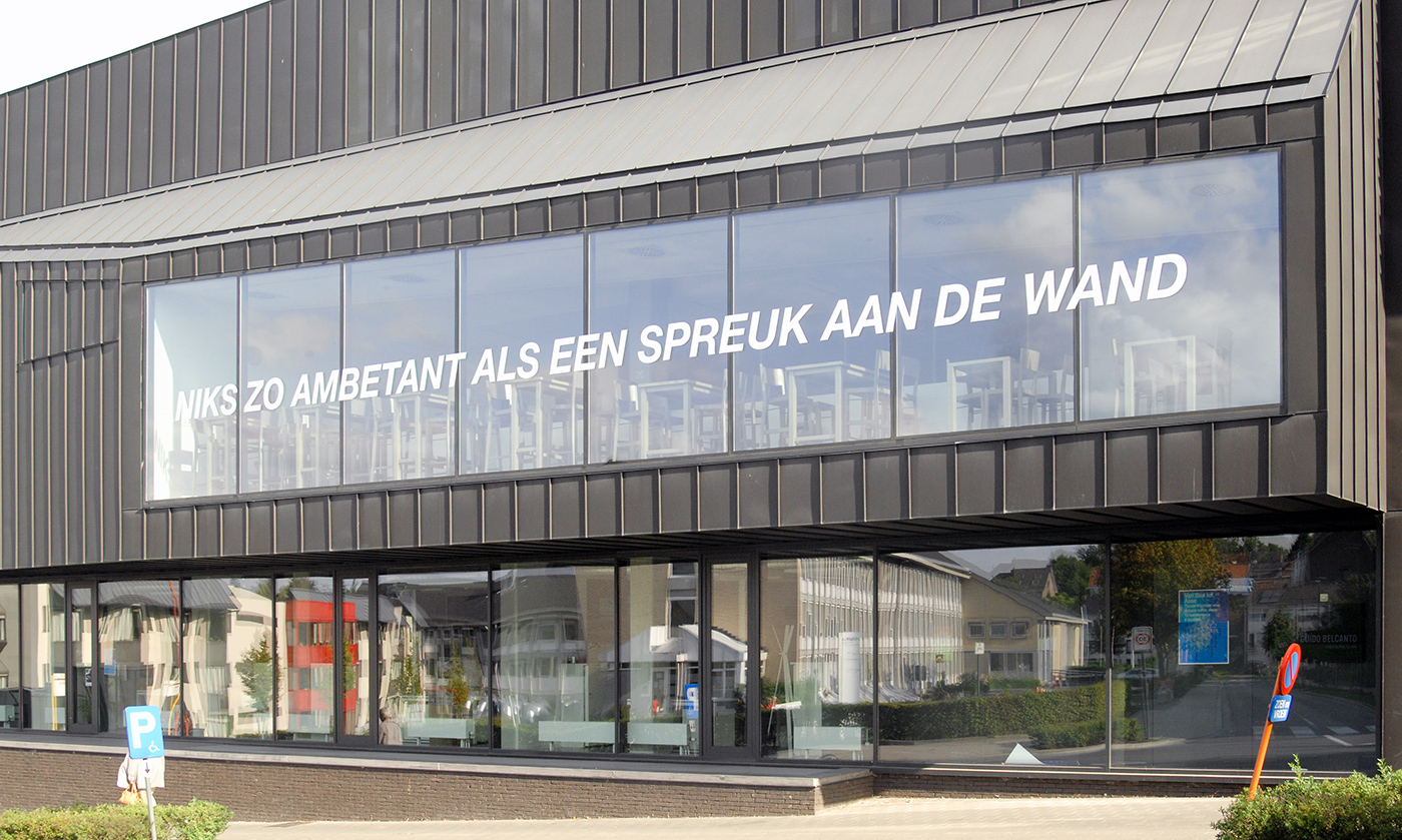De triënnale Van Stof tot Asse zal niet bij iedereen een belletje doen gaan rinkelen. Asse is een voorstadje van Brussel waar sinds ’86 galerie de Ziener gevestigd is. Toen deze 5 jaar bestond was dat reden voor een feest en zodoende ontstond deze tentoonstelling die om de drie jaar door heel Asse heen wordt gehouden. Altijd zijn dat enkele kunstenaars die vanuit de galerie vertegenwoordigd worden, maar ook juist kunstenaars die dat niet worden. Een greep uit de geschiedenis toont een indrukwekkende lijst met namen. Die van dit jaar zijn er niet veel minder om en het is dan ook een hele eer om op het beroemde gemeentehuis van Samson & Gert je naam op een banier te hebben staan met oa. Raoul de Keyser (met niet eerder getoond werk) en Bernd Lohaus. Kunstwerken zijn soms in situ gemaakt en altijd rekening houdende met de wisselende locaties van bouwvallen of gebouwen die tijdelijk niet gebruik worden. Asse wint zeer zeker geen schoonheidsprijs maar het is een interessante route.