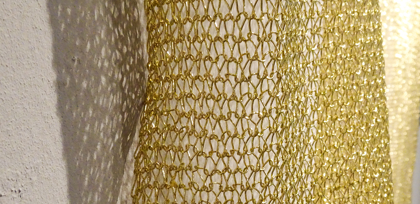 Sarah van Sonsbeeck – One bar of gold, tapestry #1 – 179x141cm Gemetaliseerd textiel draad (detail)