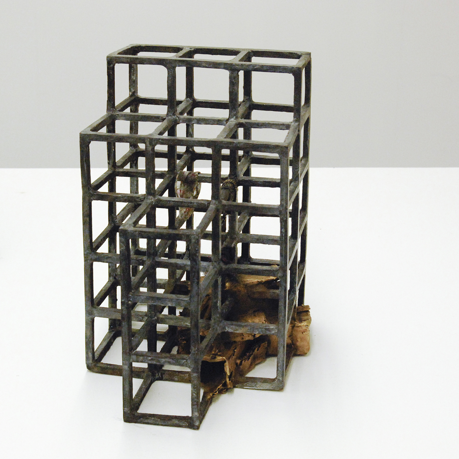 Rob Voerman – Incinerator #1 – 48x46x48cm Brons en glas & Settlement #1 – 37x29x47cm Brons en karton