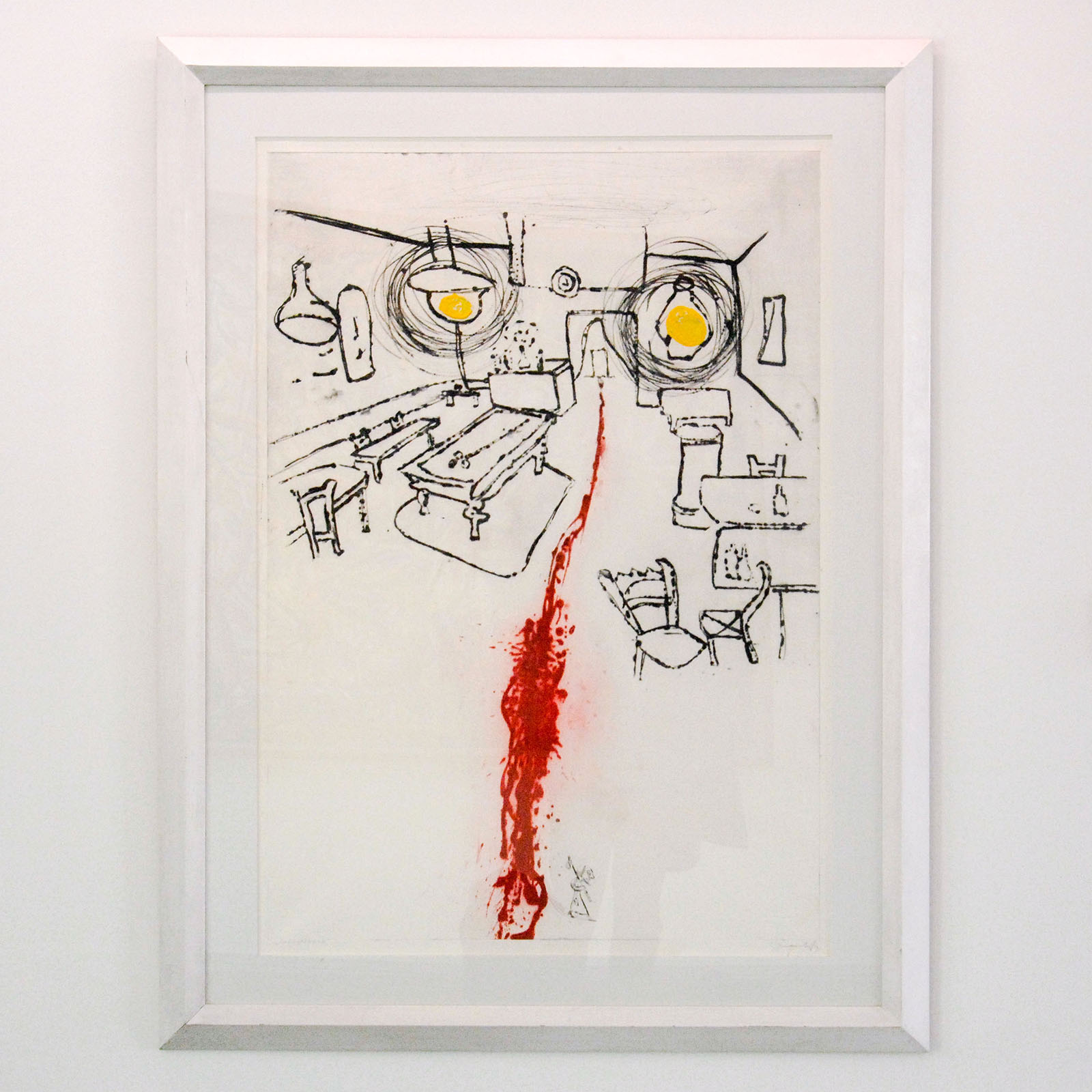 Fred Bervoets – Eenzaam cafe (Hommage aan Van Gogh) – 100x70cm Ets en verf op papier