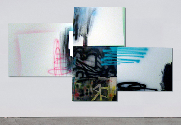 Na het werk van Martin Beck weer tijd voor iets heel anders. Wendy White is een schilderes die bij Whatspace niet zou misstaan met een mooi gevoel voor punk en graffiti. Geboren in 1971 woont en werkt in New York. Haar oudere werk vind ik aan de slechte kant, dus hier enkel en alleen haar nieuwere werken die veel met elkaar gemeen hebben maar eerder in hun radicaliteit dan dat het saai wordt. Oordeel zelf.