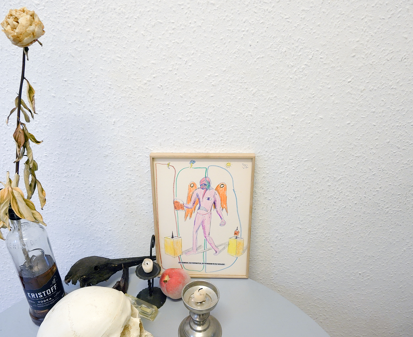 Tom Poelmans – Zelf gekweekt, zelf vertrouteld, zelf gevoederd en zelf geslacht – 29,7x21cm Pen op papier