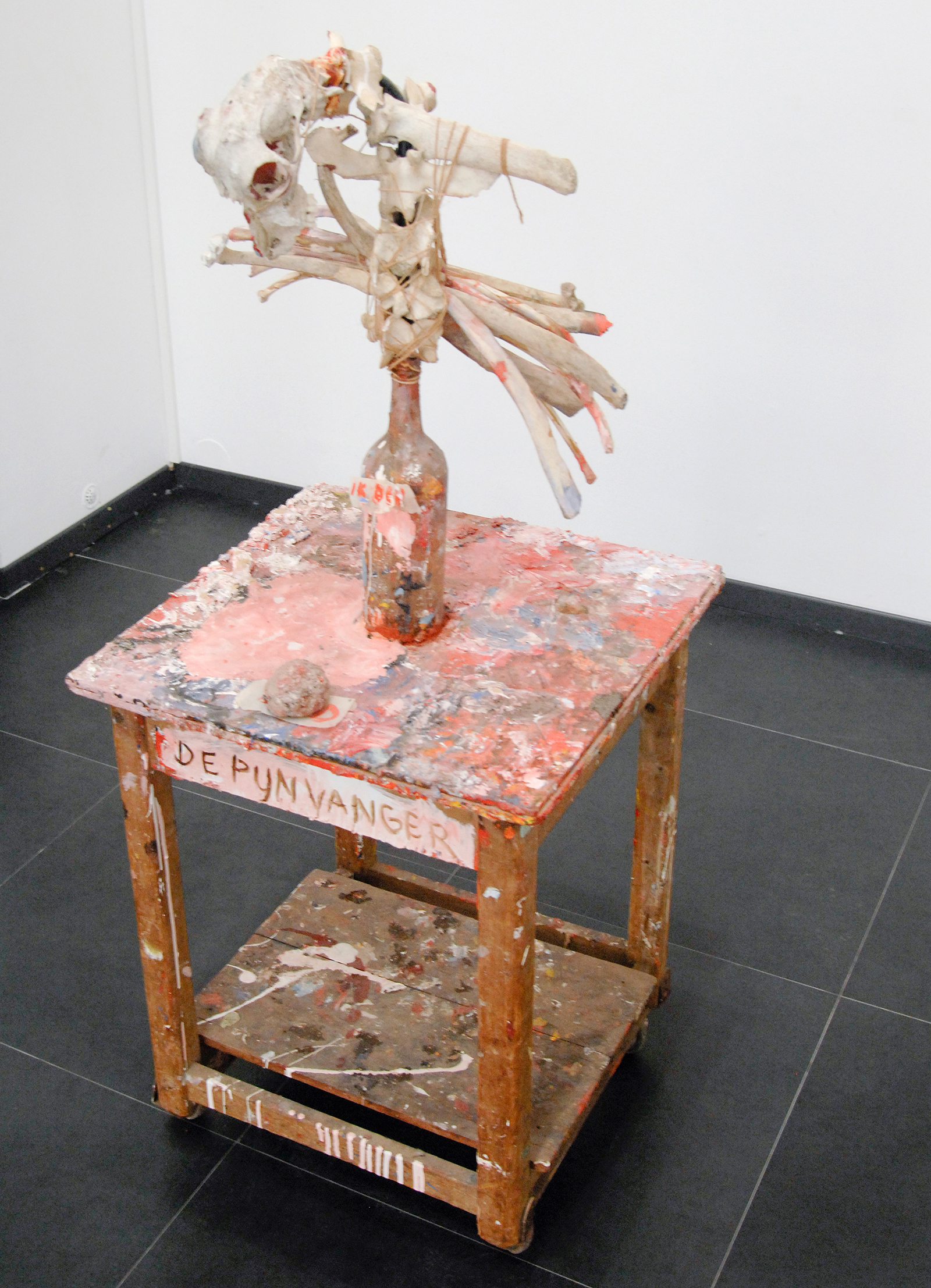 Er zitten alleen een paar addertjes onder het gras. De werken zijn keurig ingelijst en op sokkels gezet, waarmee het ondanks de salon presentatie toch nog een zekere waardigheid krijgt. Genoeg om in elk geval niet te rommelig gepresenteerd te worden zonder dat de rauwe randjes verdwijnen. Daarnaast is het werk zo radicaal in de omgang met al die clichés dat ze die ondermijnt en juist uitbuit. Het is allemaal zo afgezaagd, banaal, dat de verwondering toeslaat. Hoe kan het toch dat iemand dit kan maken?