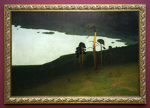 Archip Koeindzji – Zonsondergang over het pijnbos – Olieverf op papier op doek 1910