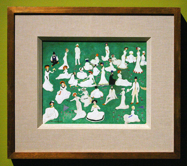 Kazimir Malevitsj – Rust (Gezelschap met Hoge Hoeden) – Aquarel, gouache, Oost-Indische inkt, gehoogd met wit op papier 1908