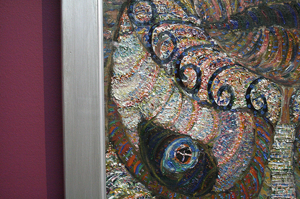 David Boerjoek – Vrouw met spiegel – Olieverf, fluweel, katoen en spiegel op doek (detail)