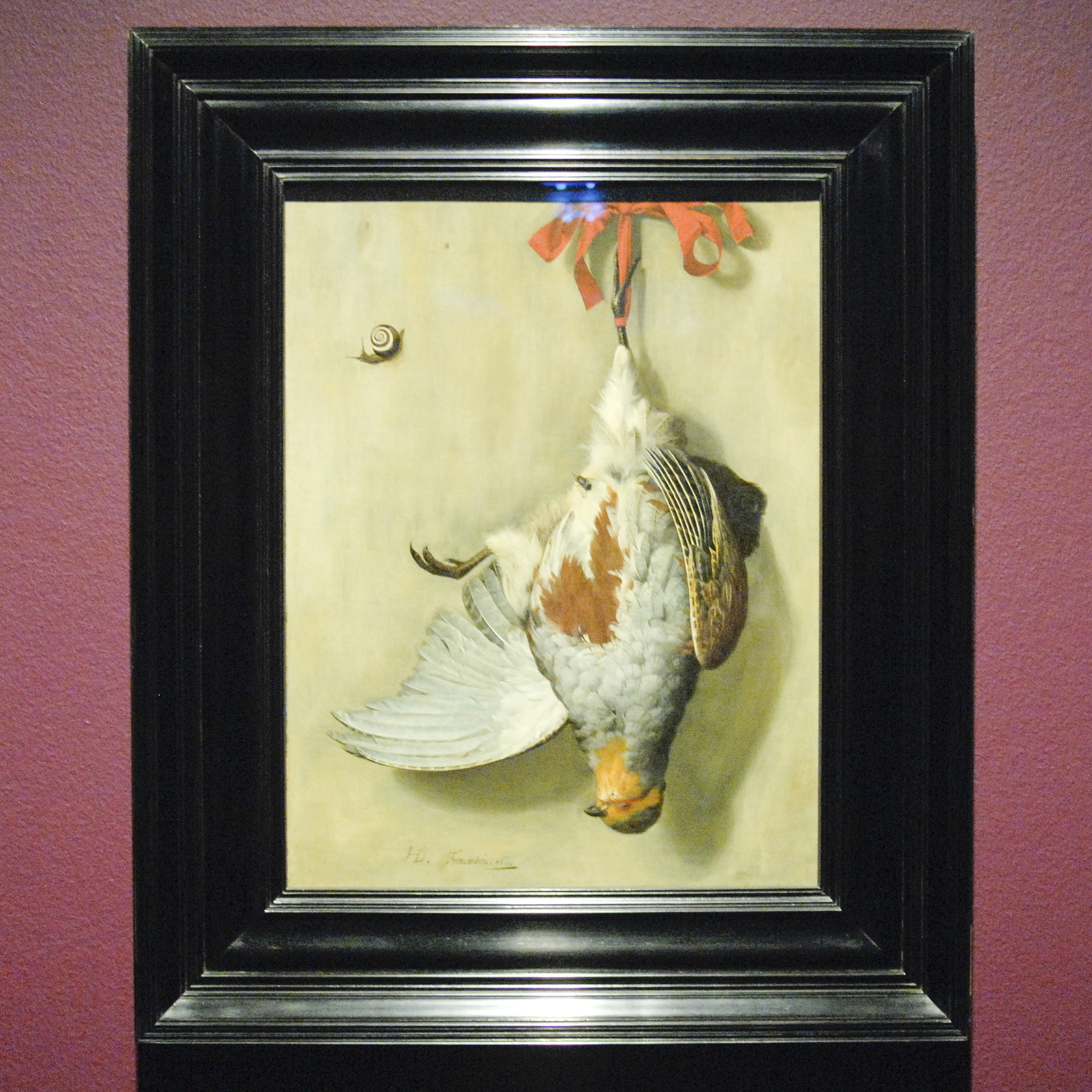 Waarom zijn werk ondanks dat uit het oog geraakt is onduidelijk, maar in elk geval niet vanwege de kwaliteit. De concentratie in het werk van Fromantiou kan zich prima meten met Mignon en Weenix waarvan ook werk te zien is in de tentoonstelling. Het werk van Fromantiou is vergeleken met Mignon zelfs levendiger.