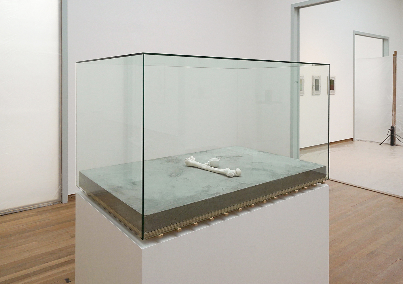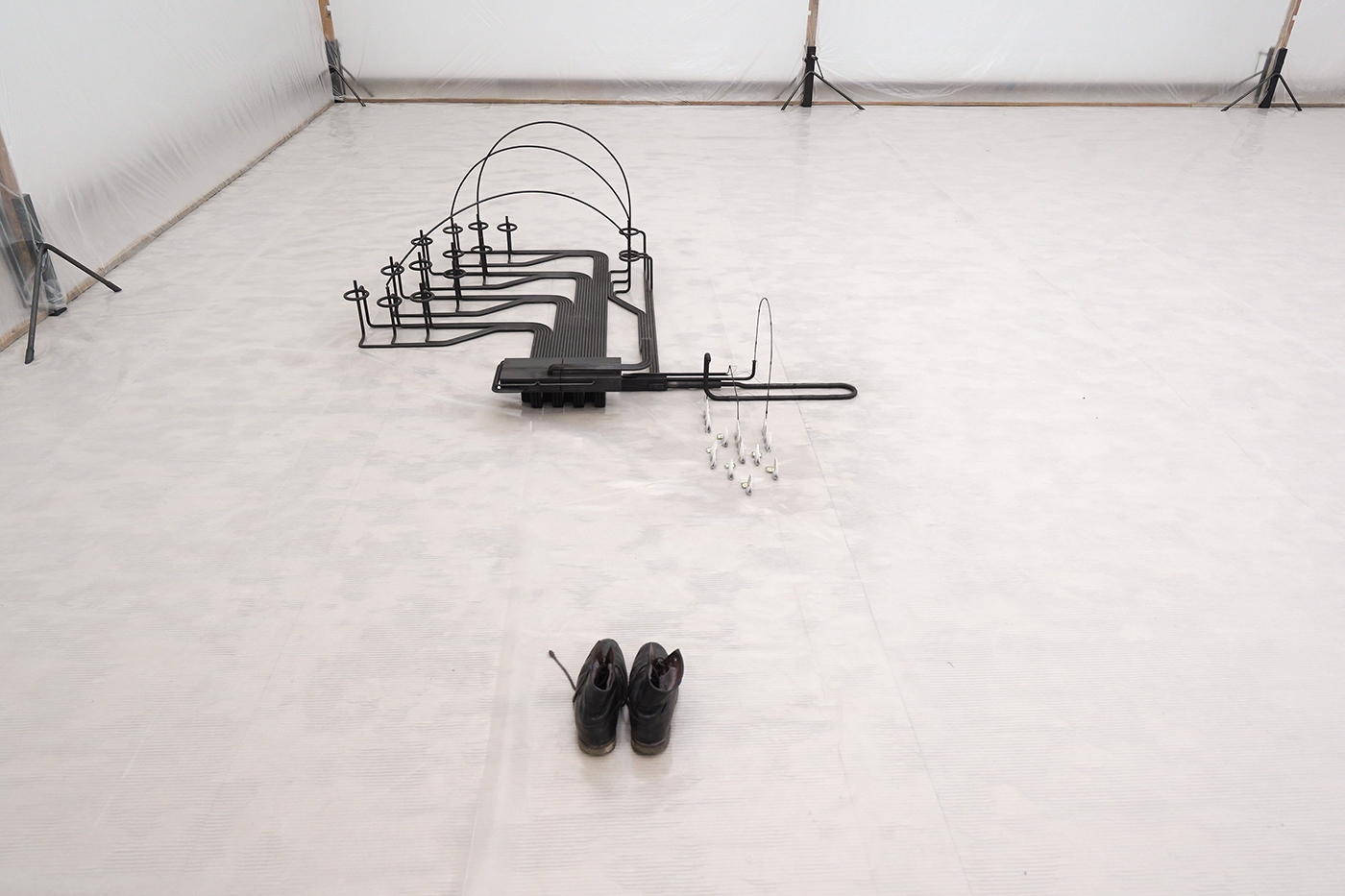 Mark Manders – Finished Sentence – Ijzer, theezakjes, touw, offsetdruk op papier en schoenen