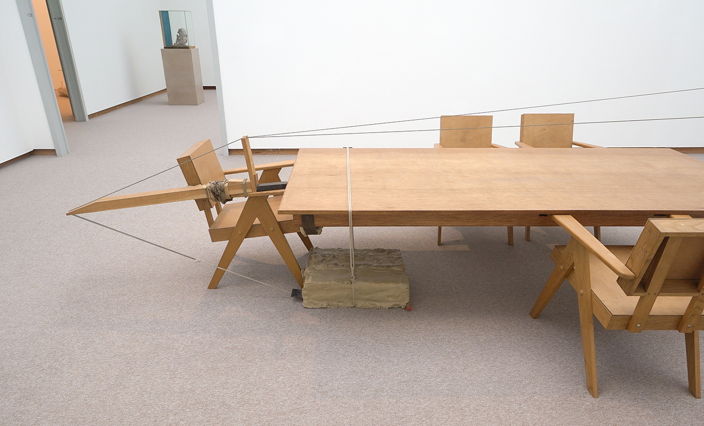 Mark Manders – Working Table – Beschilderd brons, beschilderd ijzer, beschilderd hout en ijzer (detail)