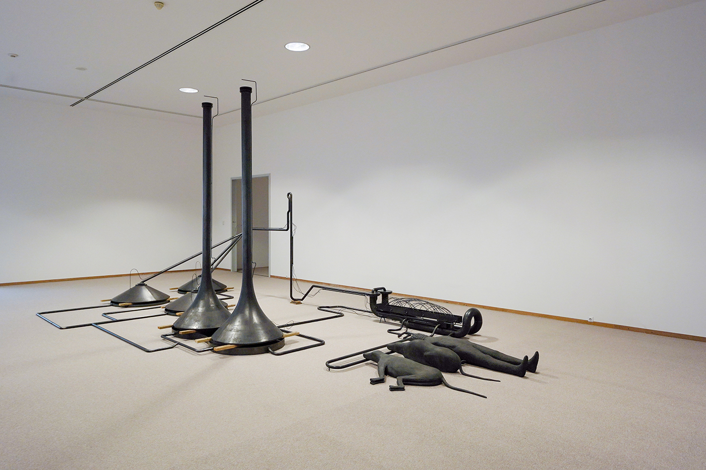 Mark Manders – Room with Unfired Clay Figures – Beschilderd brons, ijzer, hout en offsetdruk op papier (detail)