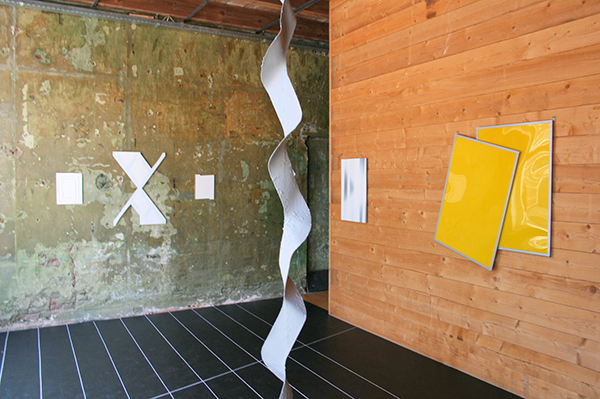 De ruimte bij Caesuur is alles behalve eenvoudig, de ene wand een vies groen, de andere van hout, de overzijde is oranjerood en tot overmaat van ramp heeft deze een witte uitsparing van wat ooit eens een deur zal zijn geweest, de vloer is zwart met witte lijnen die ook nogal opvallen. De ruimte is alles behalve een white cube.