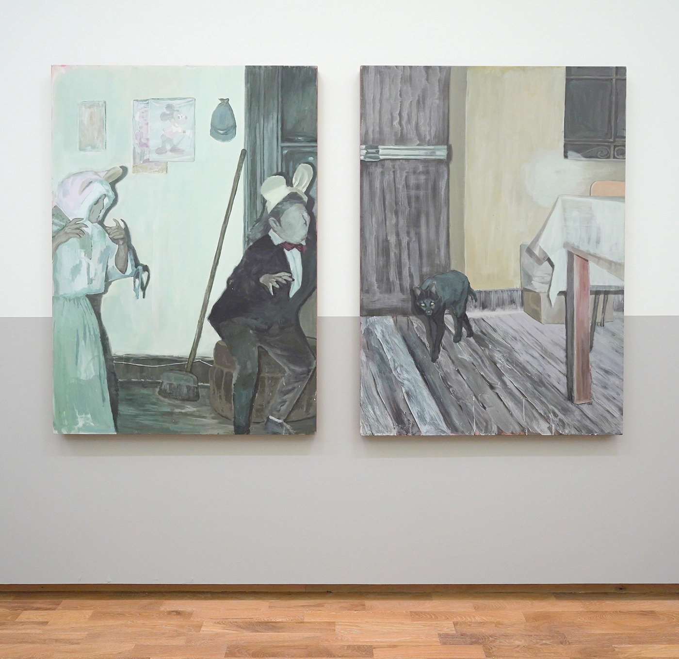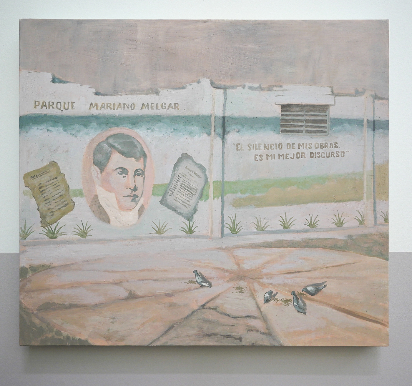 De gekleurde muren van de tentoonstelling van Arturo Kameya (1984) doen iets vergelijkbaars. De normaal helder witte muren zijn veranderd in een gruizige zweem die door de hele ruimte heen zweeft. Een mist die een filter over alle werken heen legt. De schilderijen zetten de toon van de tentoonstelling, ze geven vage suggesties van herinnering en de dingen die we misschien vergeten zijn. Deze zweem strekt verder dan enkel de wanden. De sculpturen zijn eveneens de zachte pastelkleuren onder gedompeld.