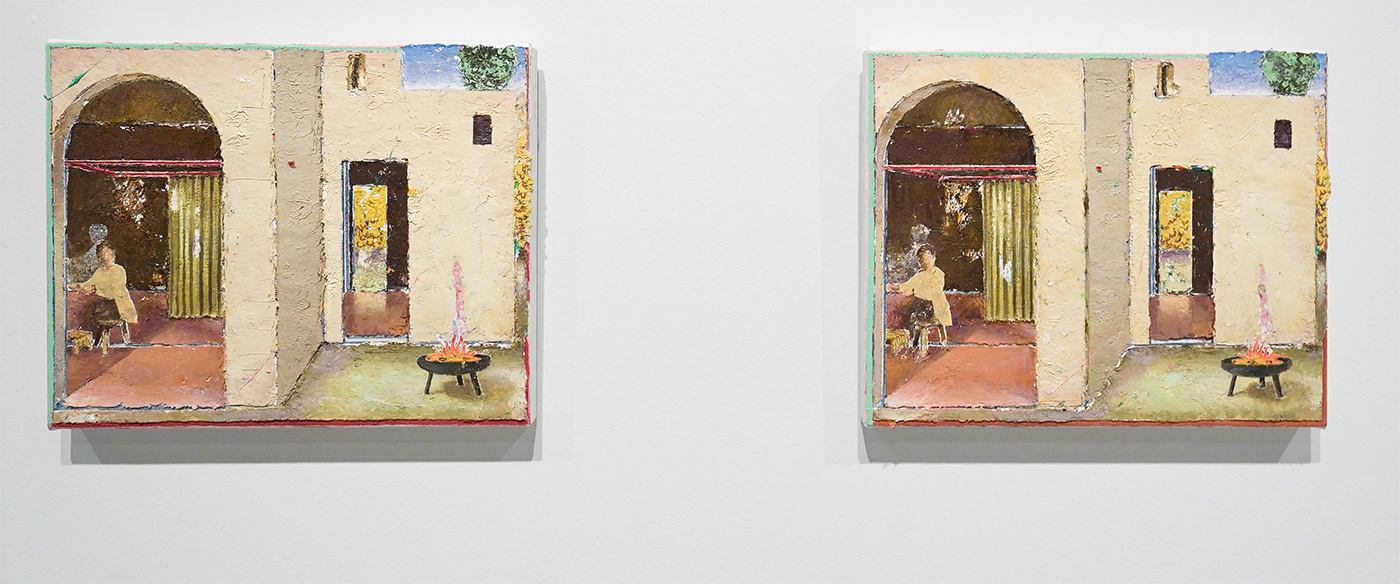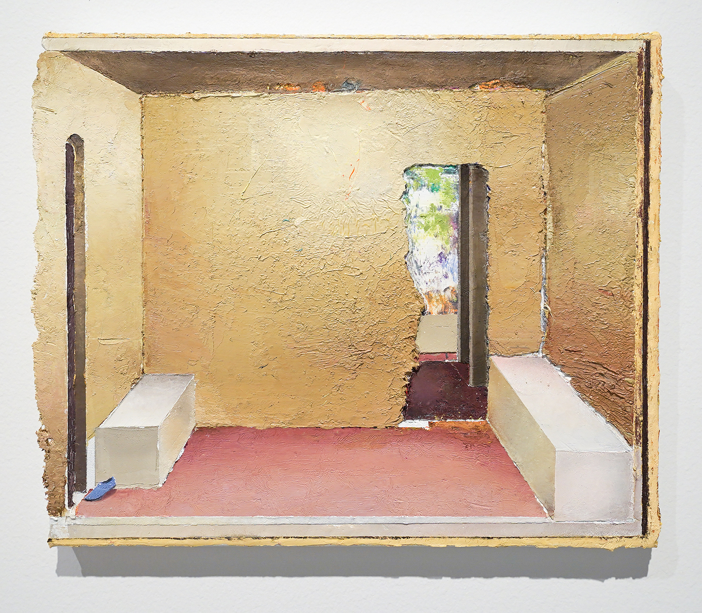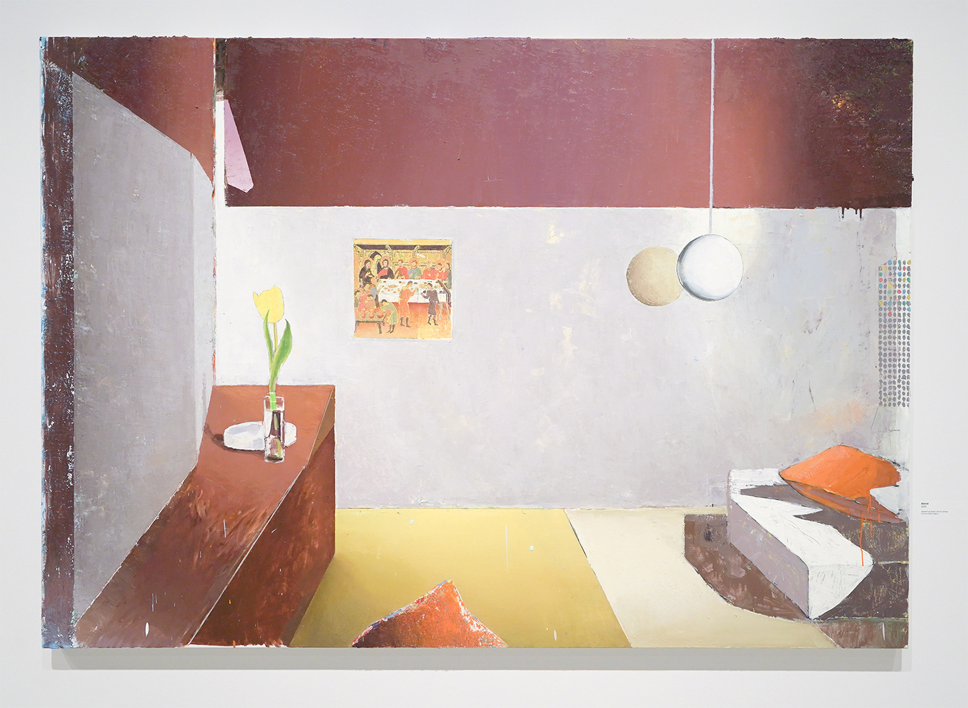 Bij het werk van Matthias Weischer (1972) denk ik vaak aan de IKEA. Niet omdat Weischer interieurs schilderd, maar vanwege de slogan die IKEA jarenlang hanteerde; Aandacht maakt alles mooier. De schilderijen van Weischer zijn over het algemeen niet uitgesproken groot, de beste zijn vaak zelfs een zeer bescheiden formaat. En juist op die kleine doeken etaleert hij precies die aandachtigheid. Je ziet hoe hij weloverwogen de verf manipuleert, met kwast en spatel, tot ruimtes. Dat een toevalligheid vervolgens wordt ingezet blijkt vooral uit de tweeluiken, waarbij die bewegingen herhaald moeten worden.