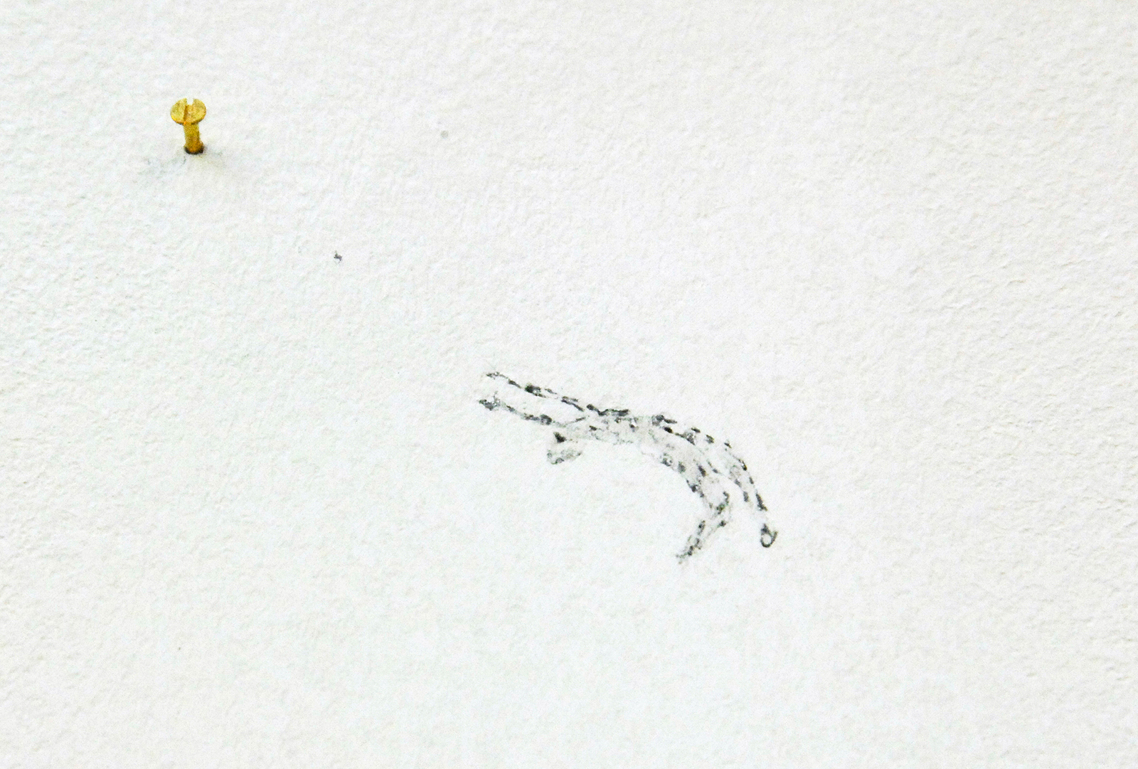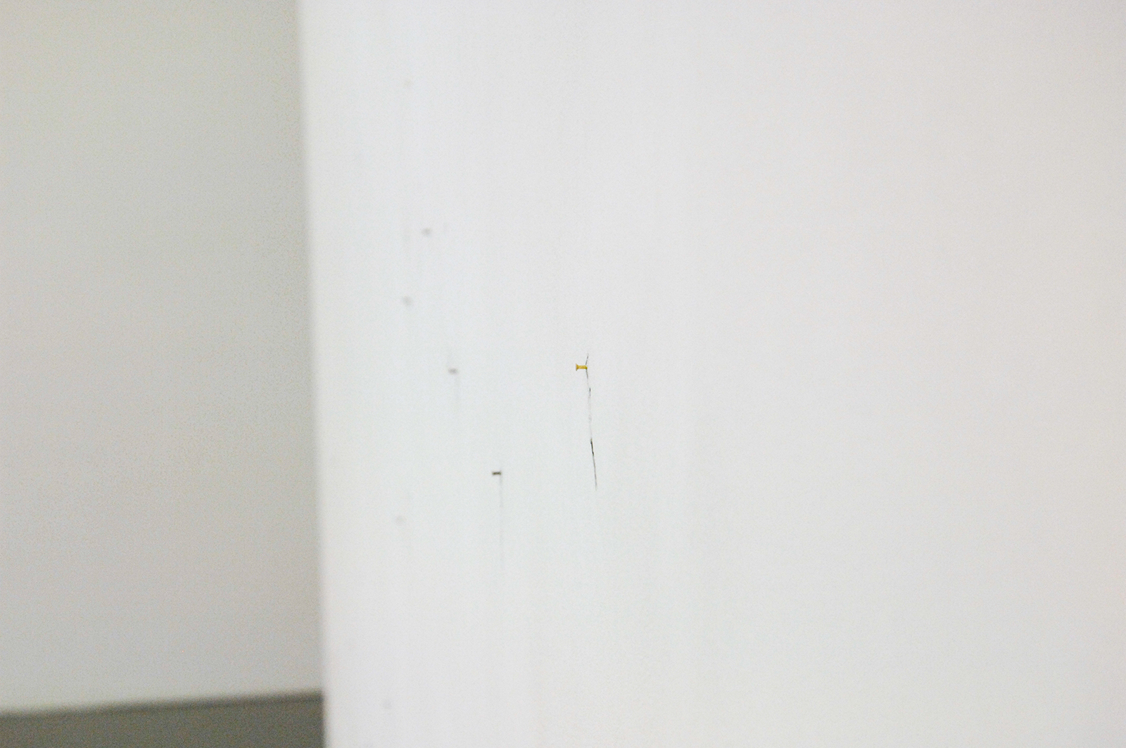 Claire Harvey – The Catch – Installatie met olieverf op muur met schroefjes en touw (detail)