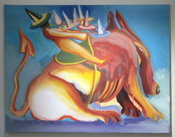 Nee, ik maak geen grapje. Ze zijn allemaal op een heel luchtige en optimistische manier geschilderd. Meer als een fantasie dan een hel zoals Jeroen Bosch. Ik heb niet het idee dat Heddy-John dit werk maakt vanuit een doemdenken maar eerder vanuit een fantasiewereld.