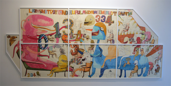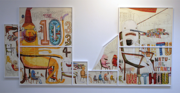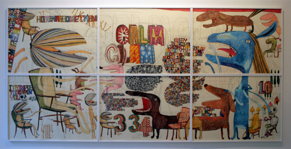 Shintaro Miyake - Life is Awesome of Aweful - 158x358cm Acrylverf, kleurpotlood collage en potlood op papier