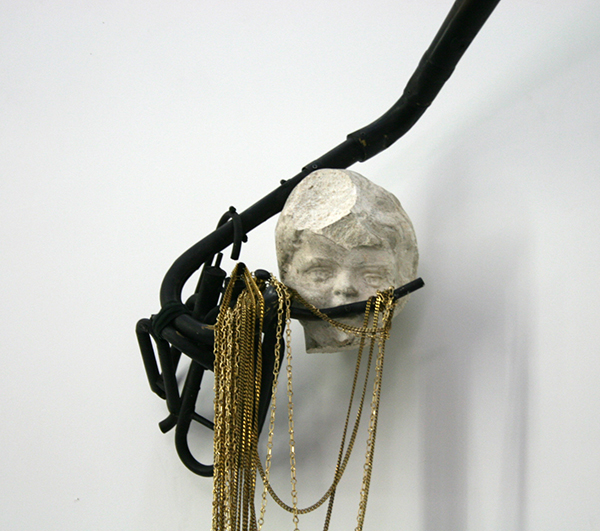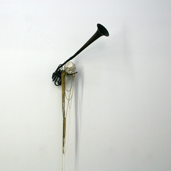Ricardo Brey – Your Words are Honey and Poison – 60x80x50cm Steen, trompet en gouden ketting (detail)