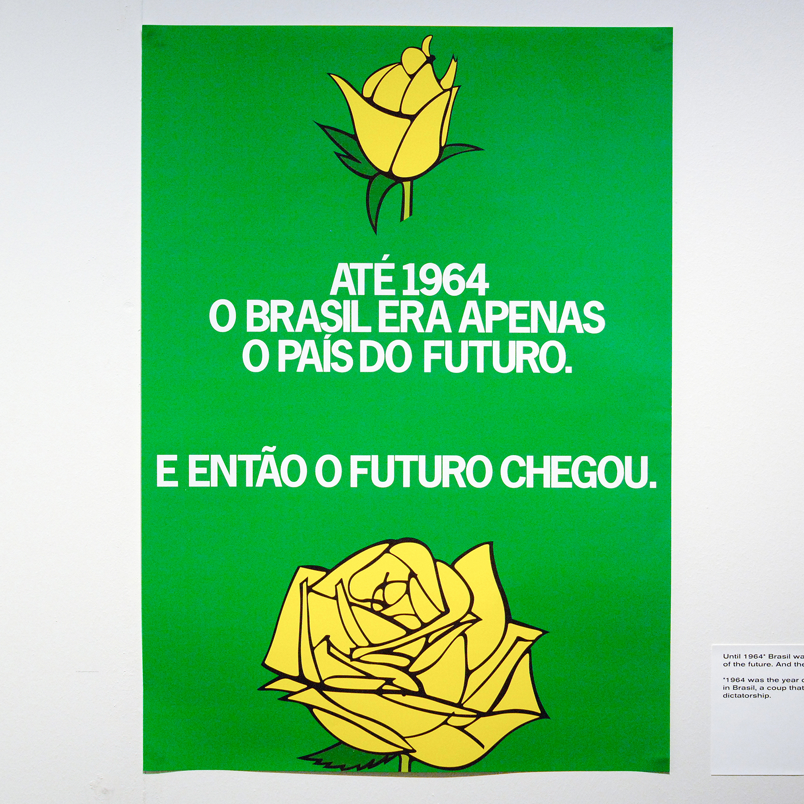 Carla Zaccagnini – Evidencias de uma farca (Evidence of a Farce) – Apenas o futuro (Only the Future) – 60x42cm Reproductie uit een magazine uit de 70’s met de tekst Until 1964 Brasil was the only country of the future, and than the future began’ In 1964 was het jaar van de militaire coup in Brazilië waarna een dictatuur plaatsvond van meer dan 20 jaar