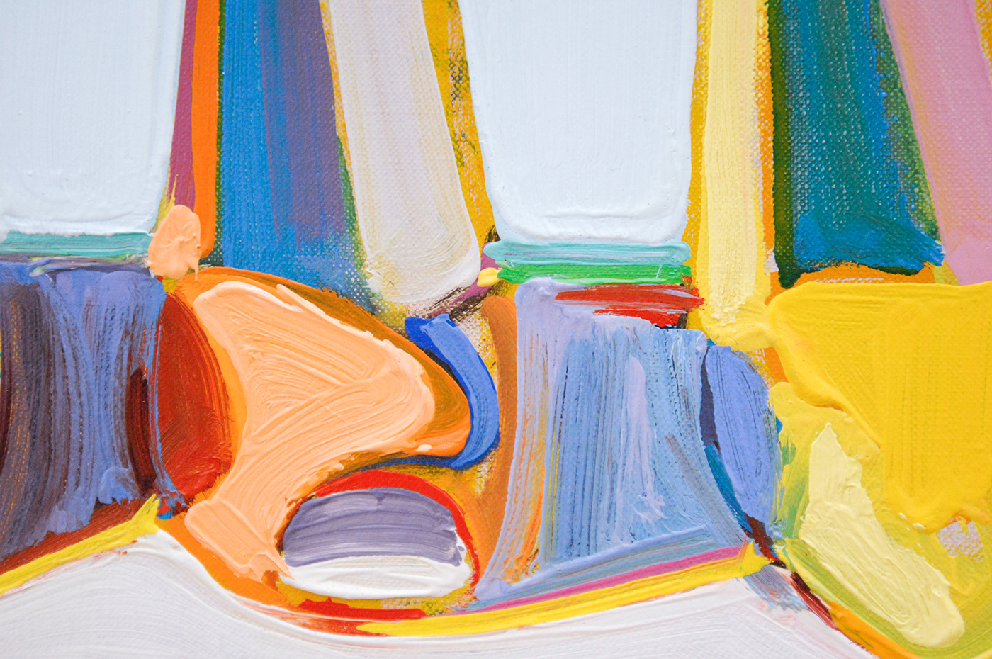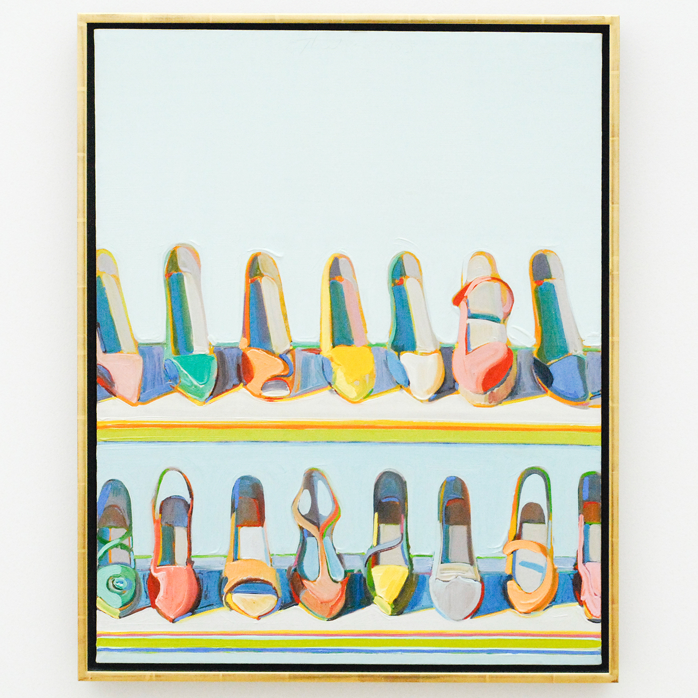 Maar het zijn dan wel mooi fenomenaal geschilderde taarten, ijsjes, schoenen en snoepgoed die Wayne Thiebaud (1920) maakt. De onderwerpen lijken eerder schematische representaties van objecten waarin Thiebaud de ruimte neemt om schilderkunstige experimenten te doen. Met name de schaduwen en de outlines van de objecten tonen een kleuren rijkdom. De combinatie met de pasteus geschilderde delen of juist de magere maken het enorme rijke schilderijen. Je ziet dat Thiebaud een ontzettend vaardig schilder is. Vreemd is het niet, Thiebaud draait al sinds 1951 mee.