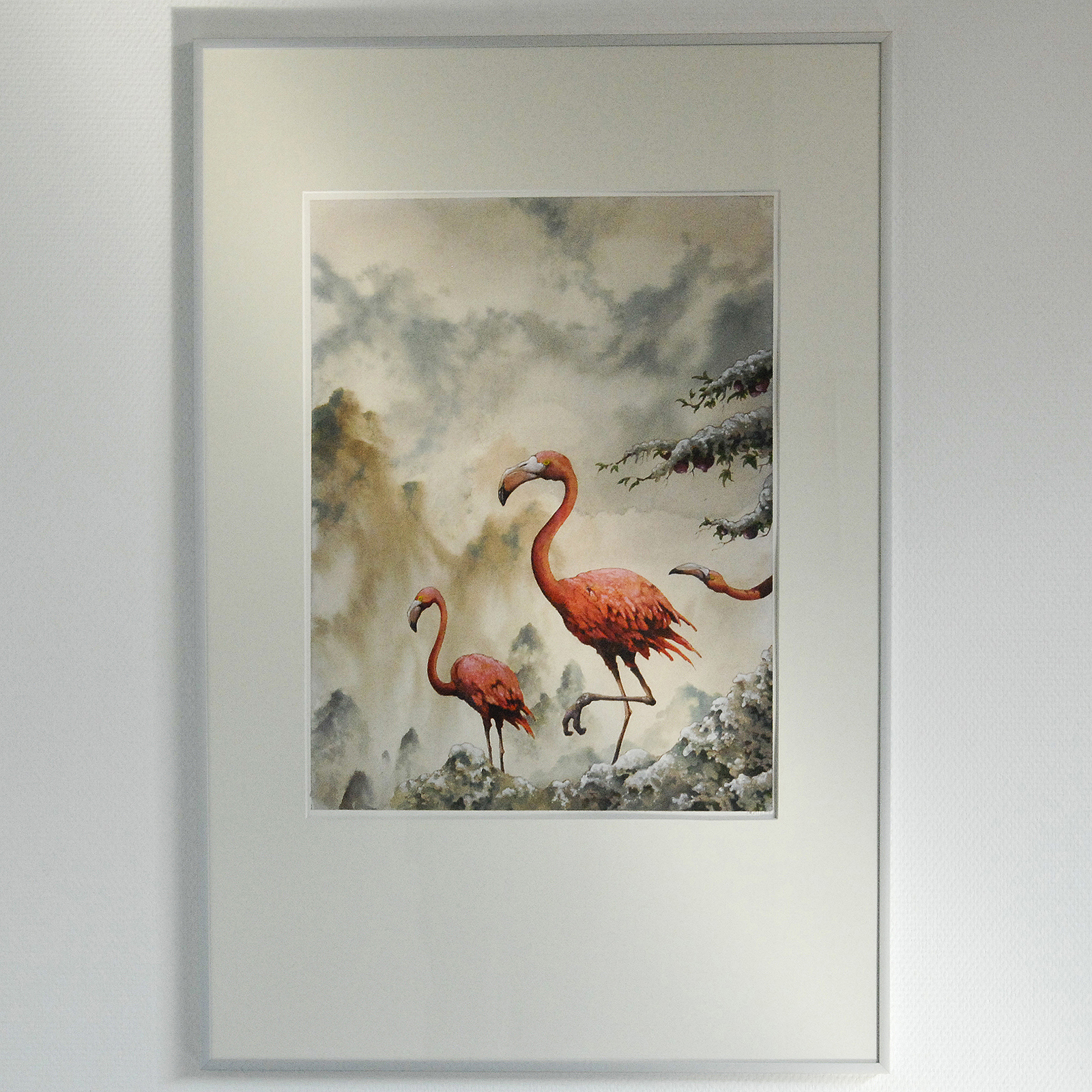 Arik Roper – Flamingos – 16x22inch Aquarel, inkt en gouache op papier