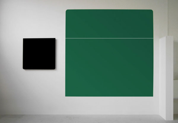 Zeker weten of dit nu een schilder is met gevoel voor ruimte en installatie of een architect met een goed gevoel voor kleur vorm en onderzoek weet ik nog niet zeker. Maar dat het scherp is en er retestrak uitziet, dat zeker. Dit kwamen we tegen op het PYTR75-blog, (en blijkbaar eerder gemist bij Trenbeheer) daar waar vooral veel architectonisch werk te zien is. Het werk van Sigmund De Jong is te koop bij een galerie in Goes, Van den Berge en draagt daar de titel ‘wallconcepts’.