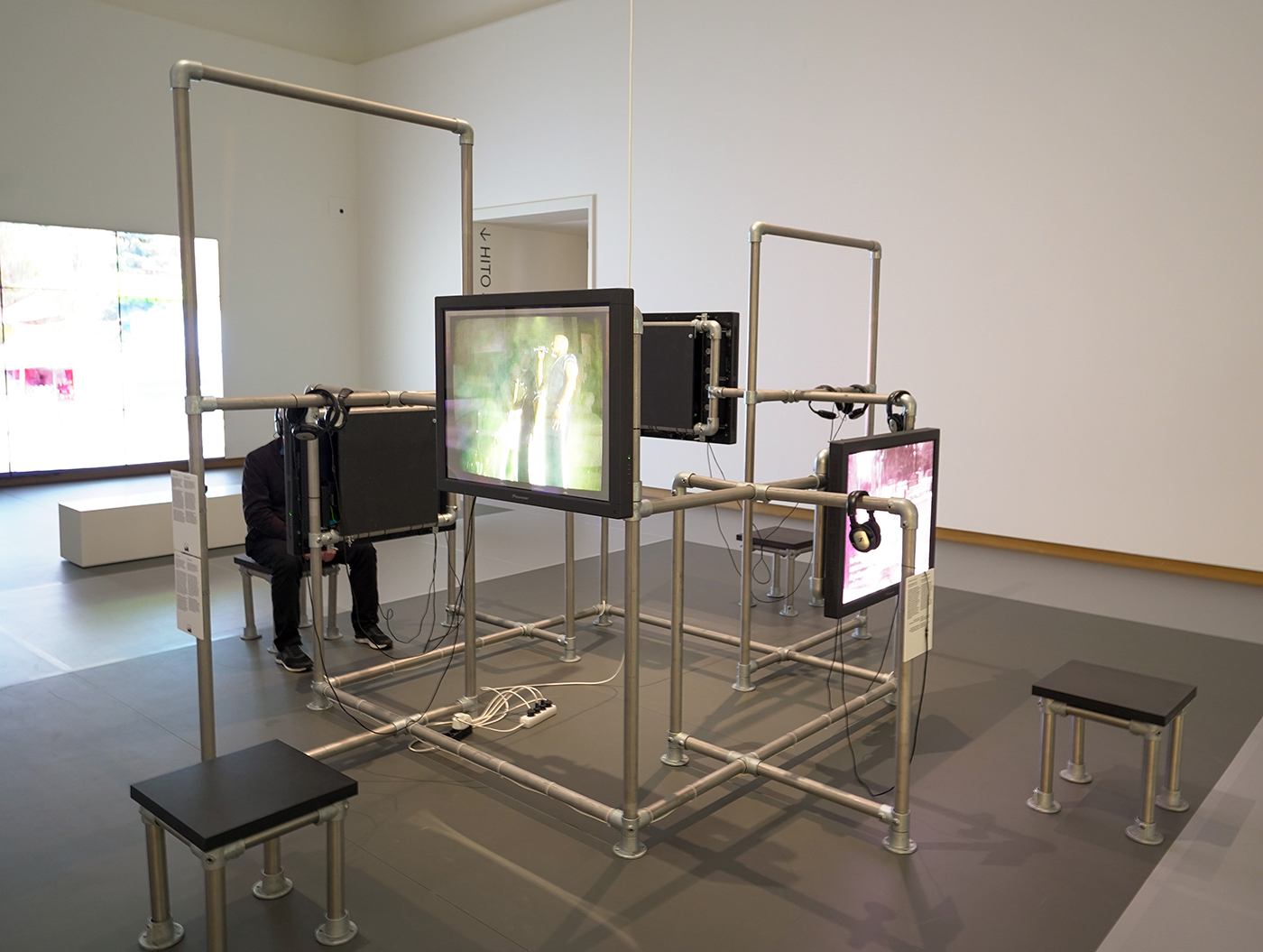 Hito Steyerl – The Tower – Driekanaals HD-video-installatie met omgevingssculptuur, kleur, geluid, 6,55minuten, 2015